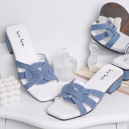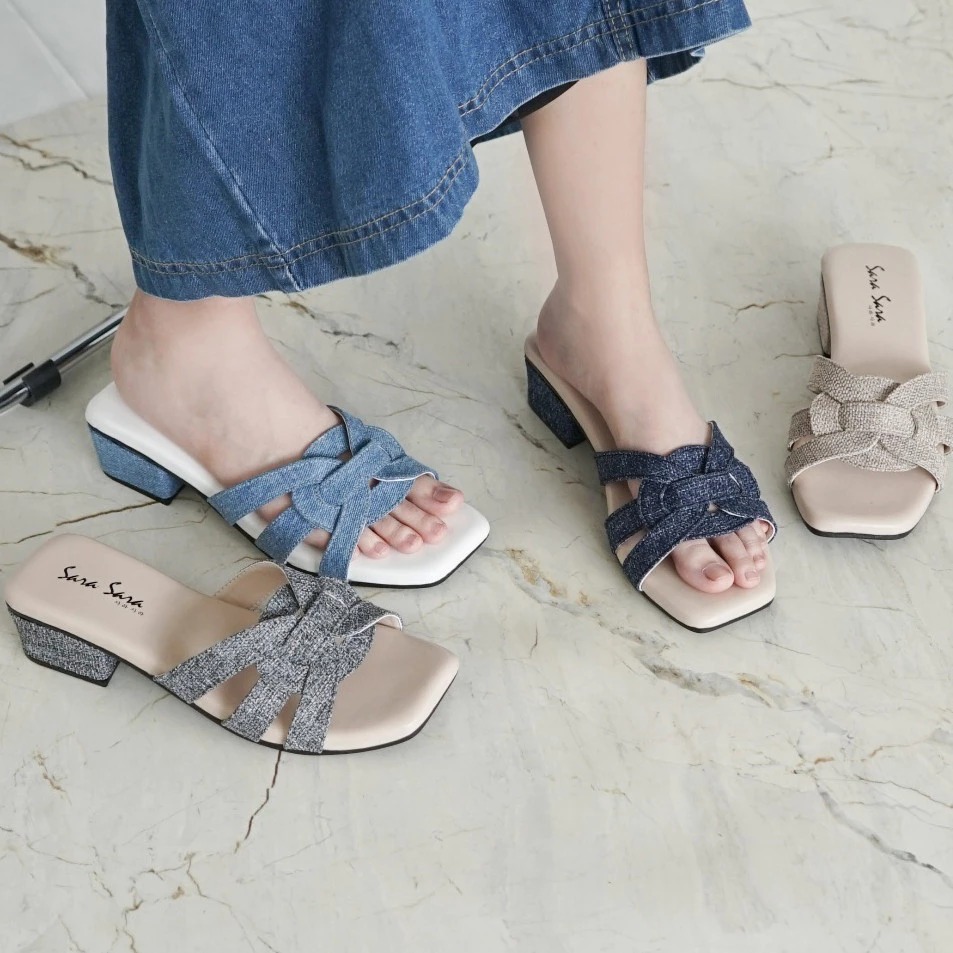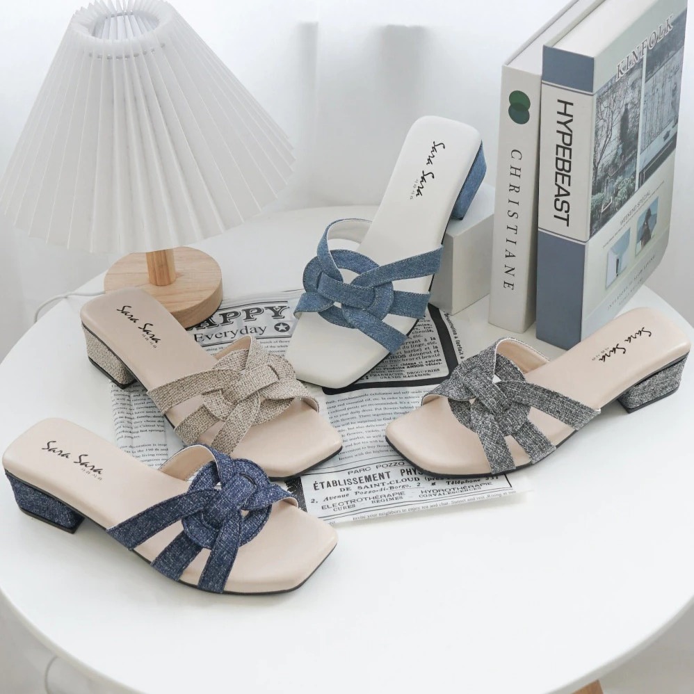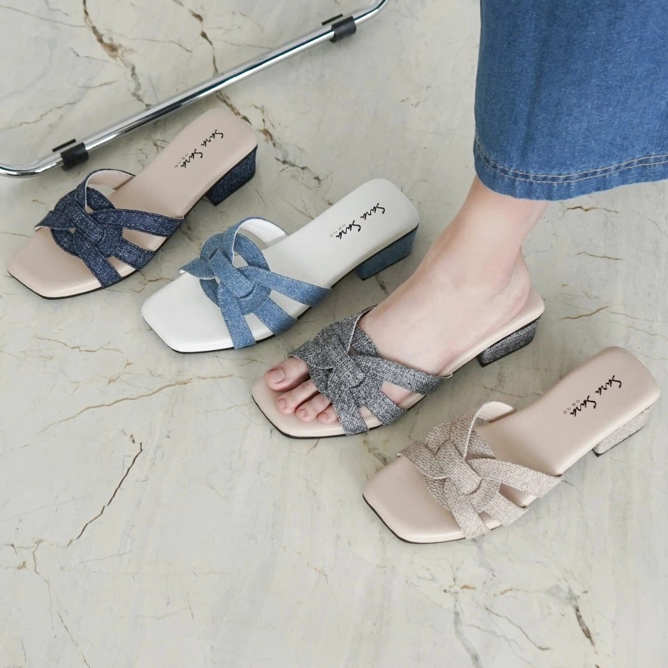 Sendal - sendal cewek - EVELYN Sandal Wanita High Heels Premium Size 36 - 40 Elegan Tinggi 4cm Sendal Selop Hak Tahu