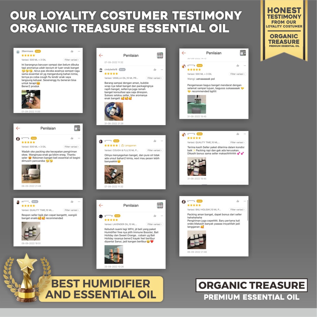 Organic Treasure - Paket Diffuser 500Ml Aromatherapy Free 4 Essential Oil Grade+ 1 Year Guarantee