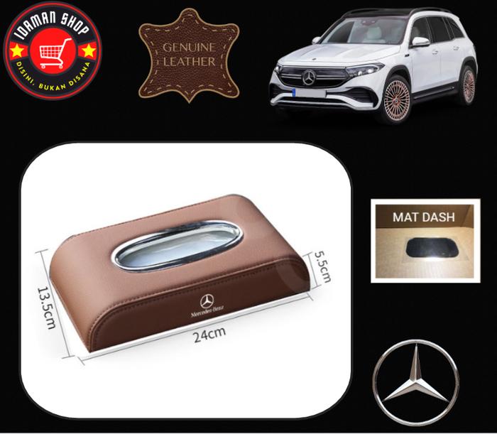 TEMPAT TISIU MOBIL MERCEDES BENZ BAHAN KULIT PREMIUM - KOTAK TISU MOBIL - CAR TISSUE BOX - BLACK