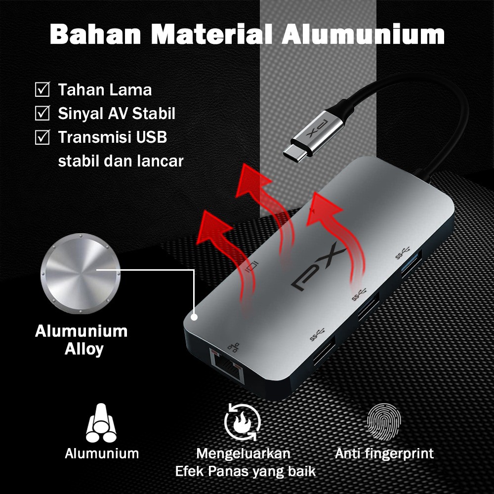 USB Hub Type C Converter Laptop to HDMI LAN RJ45 6in1 PX UCH16