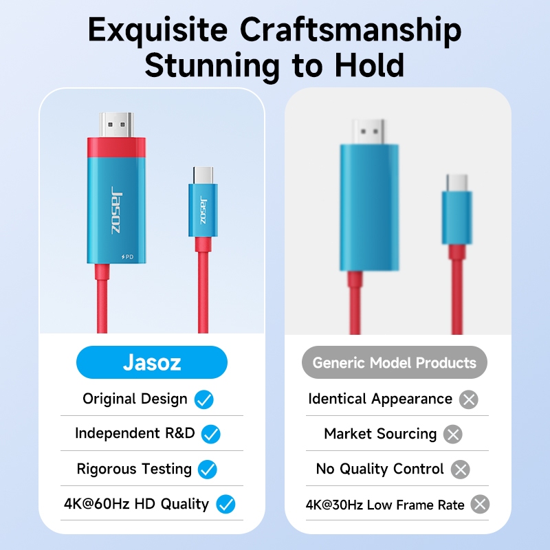 Jasoz Adapter Kabel Type C to HDMI 4K 60Hz Converter PD 100W Fast Charging TV Proyektor 2M