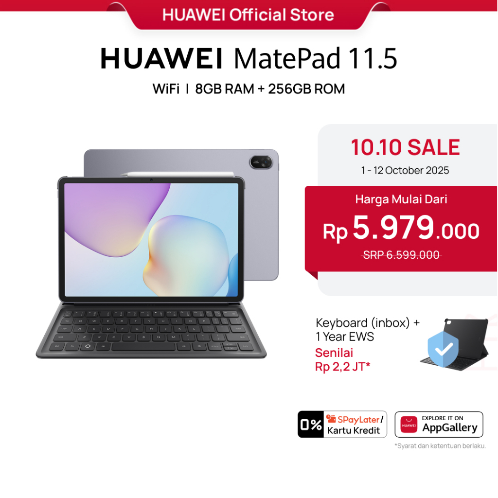 HUAWEI MatePad 11.5-inci 2025 Tablet | WPS Office 2.0 Tingkat PC Eksklusif | Layar Papermatte | 10,100 mAh 40W HUAWEI SuperCharge