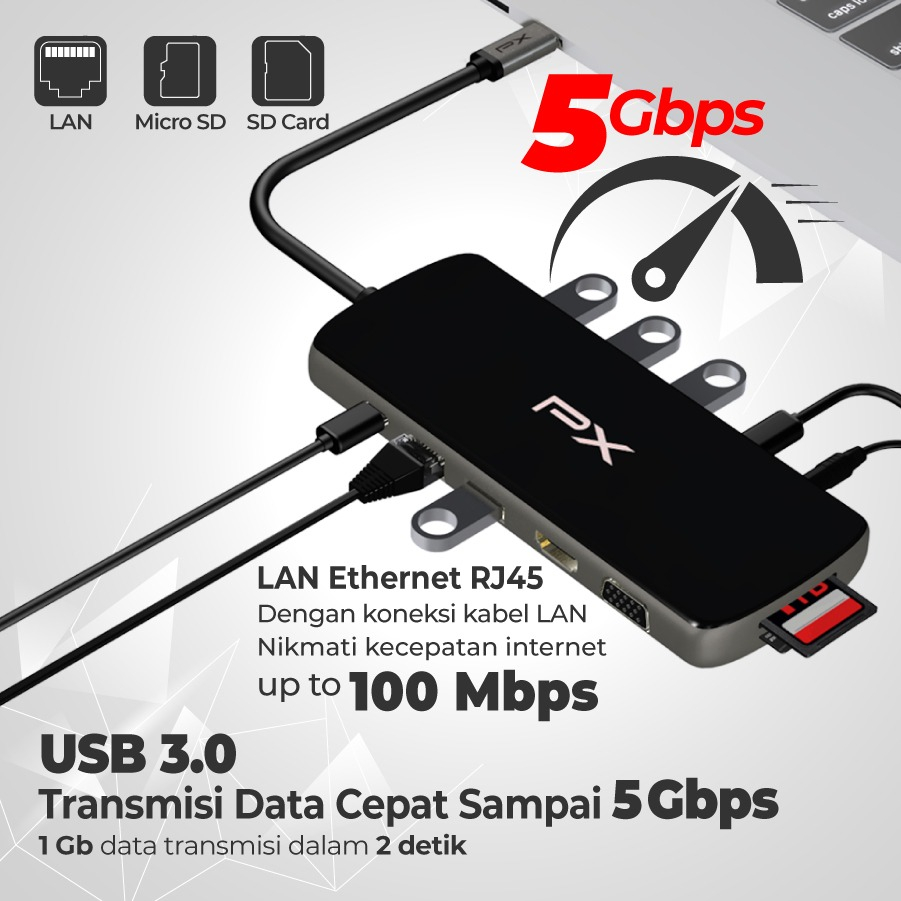 Type C 3.1 Hub Converter to HDMI USB 3.0 SD TF 12 in 1 PX UCH120B