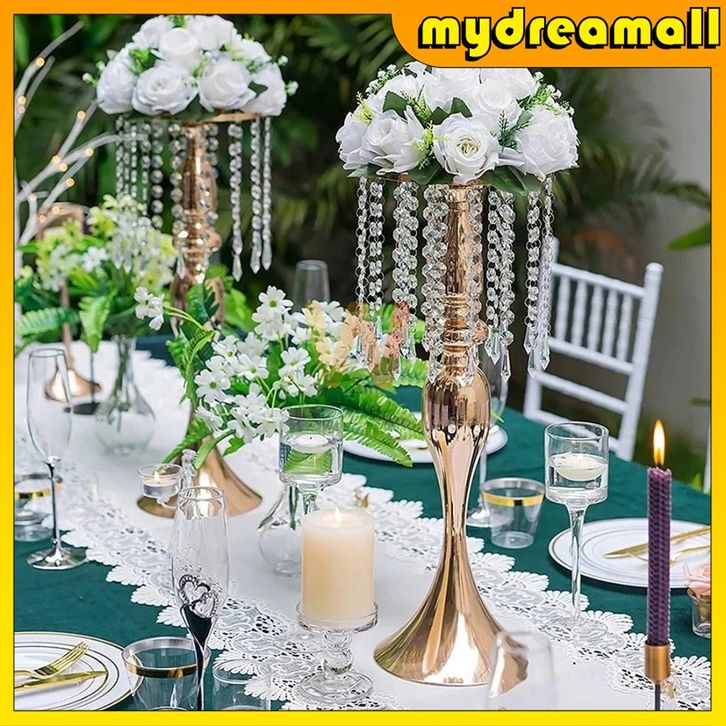 Twist candle holder ornamen alat peraga pernikahan wayfarer vas logam besi akrilik rumbai pernikahan wayfarer