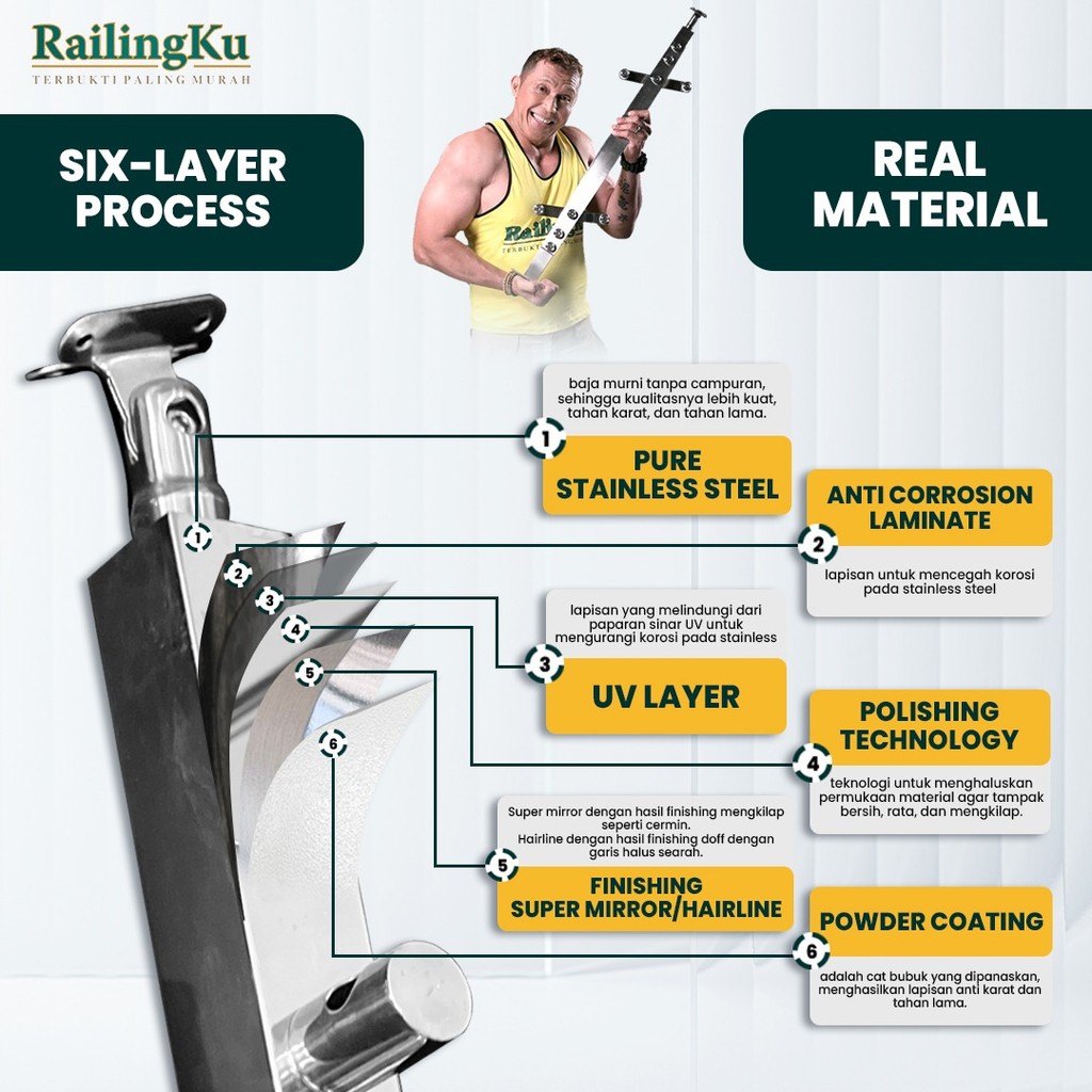 Railing Tangga Stainless Kaca Minimalis Tiang Railingku [OMG] RK 92 Railing Anti Karat Free Penutup Dynabolt | Garansi