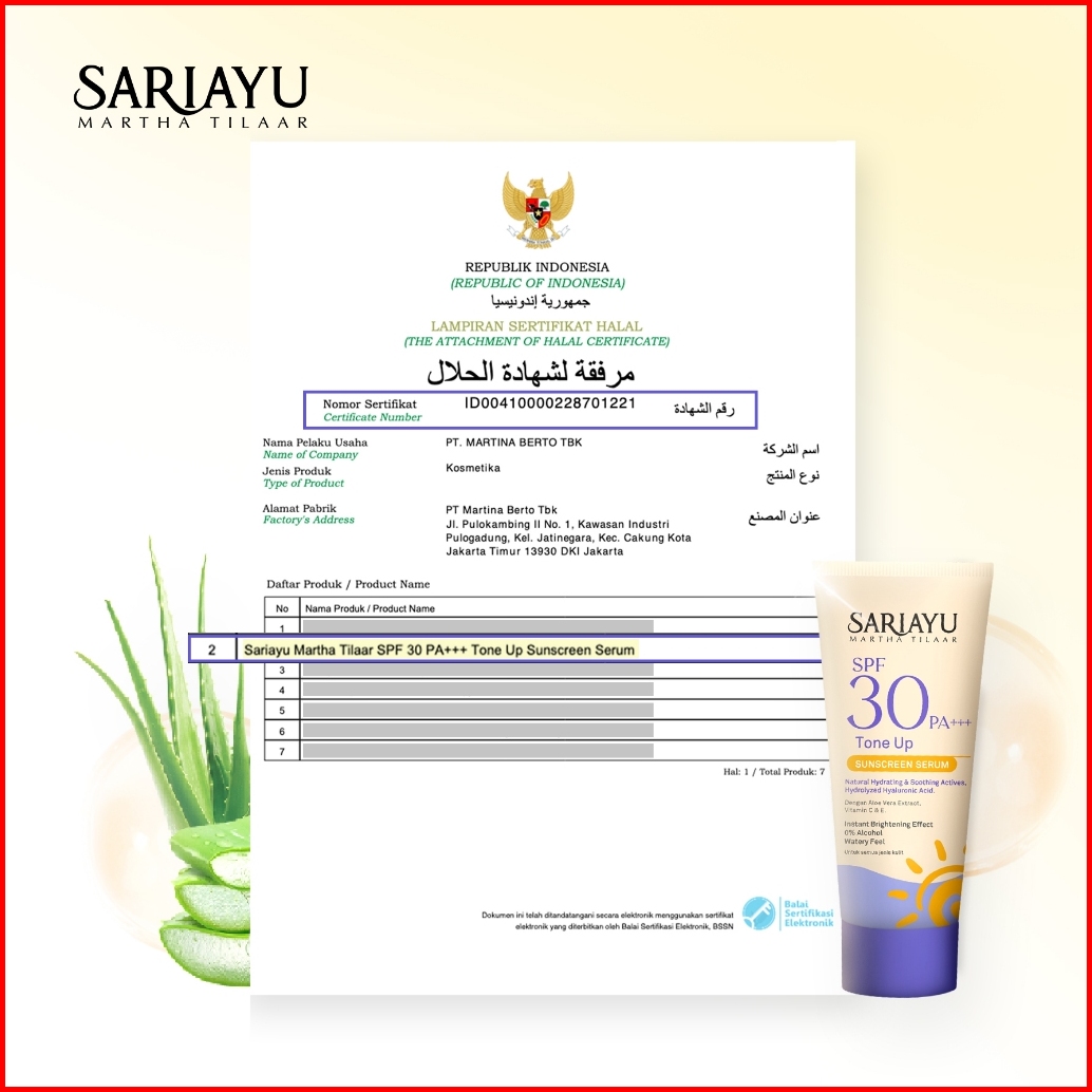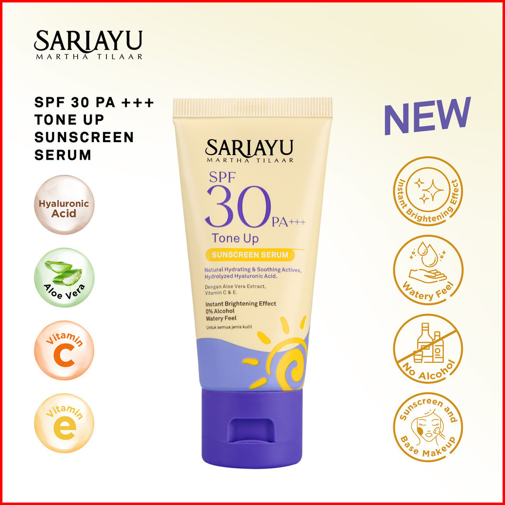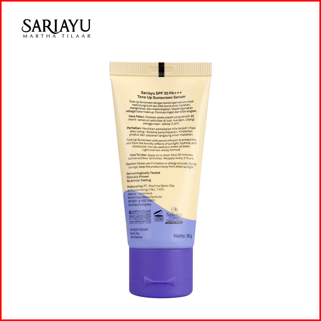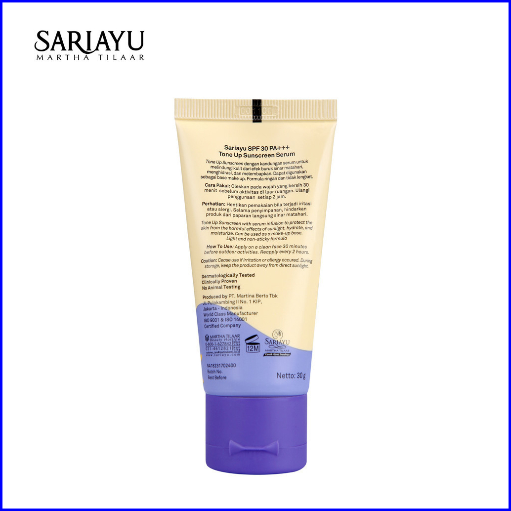 Sariayu Spf 30 Pa Tone Up Sunscreen Serum 30 Ml Brightening Mencerahkan Alcohol Free Non Acnegenic Non Comedogenic Broad