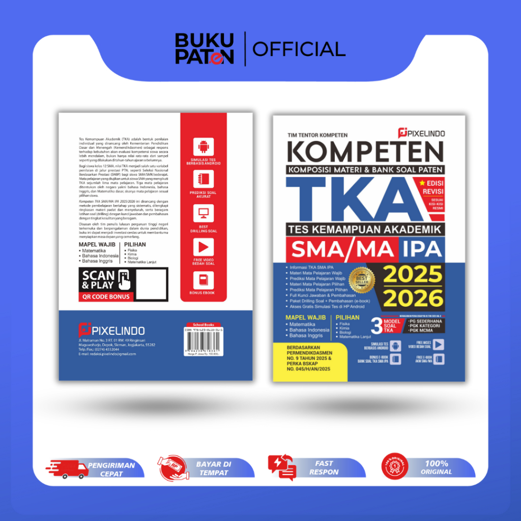 Buku Kompeten Tes Kemampuan Akademik TKA IPA DAN IPS SMA / MA Tahun 2025/2026 - Pixelindo