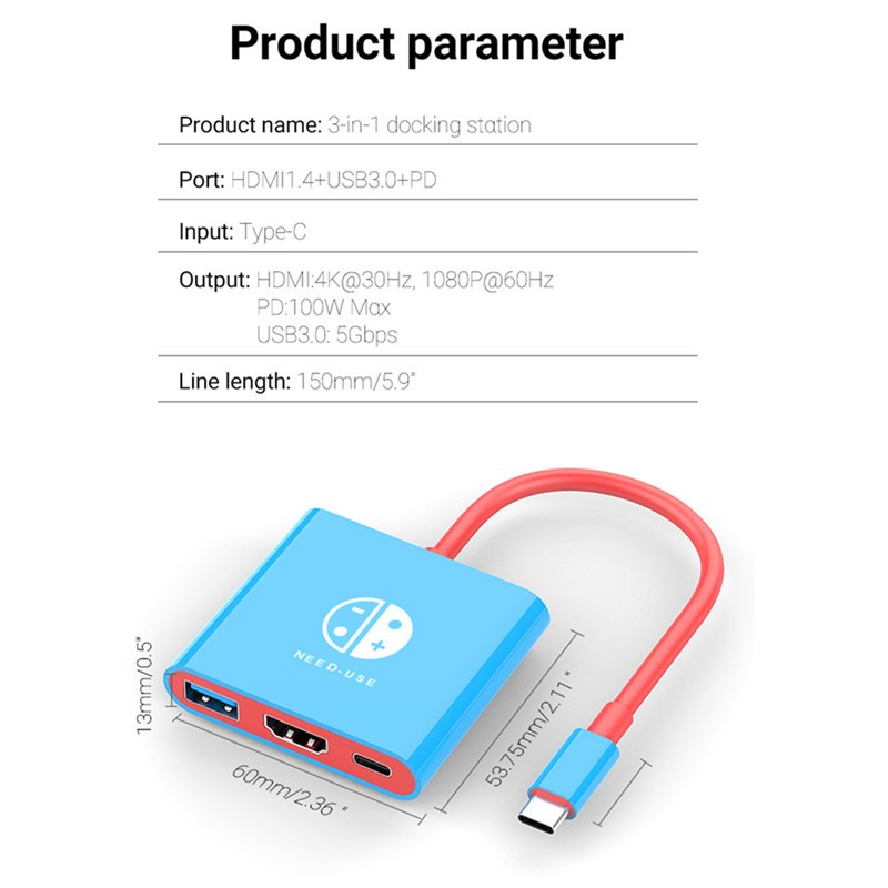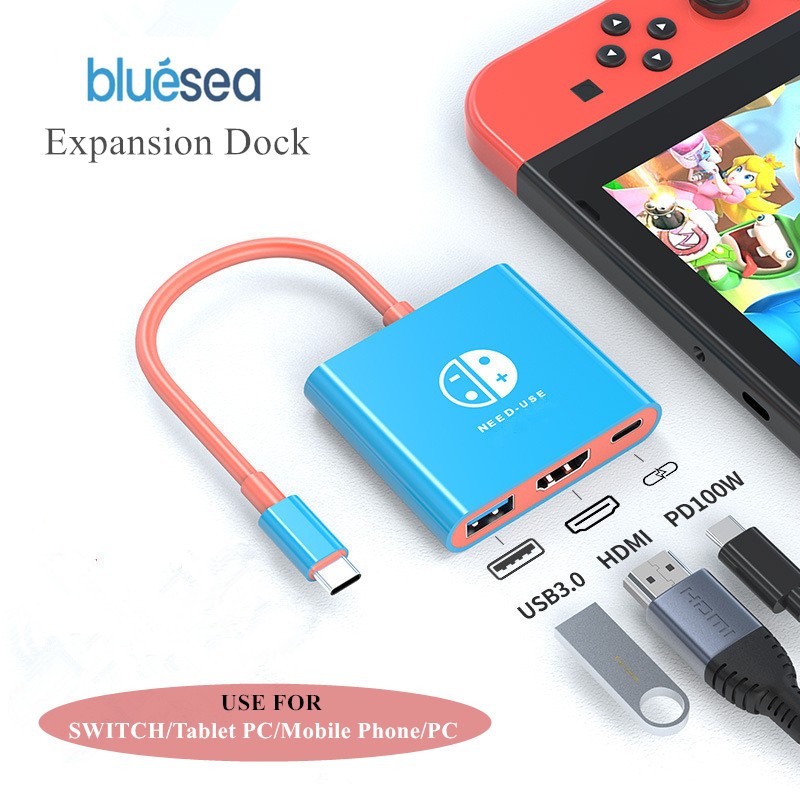 Bluesea 3 in 1 HUB Converter Adaptor 4k video converter USB /Type-C/HDMI Expansion dock