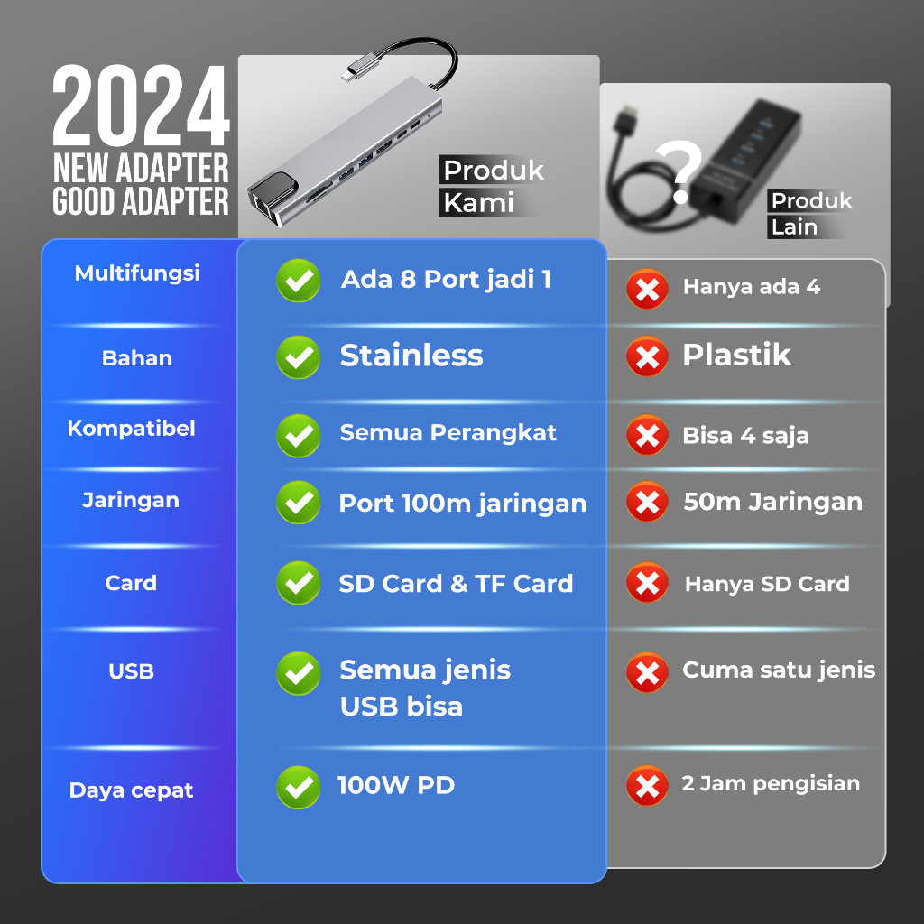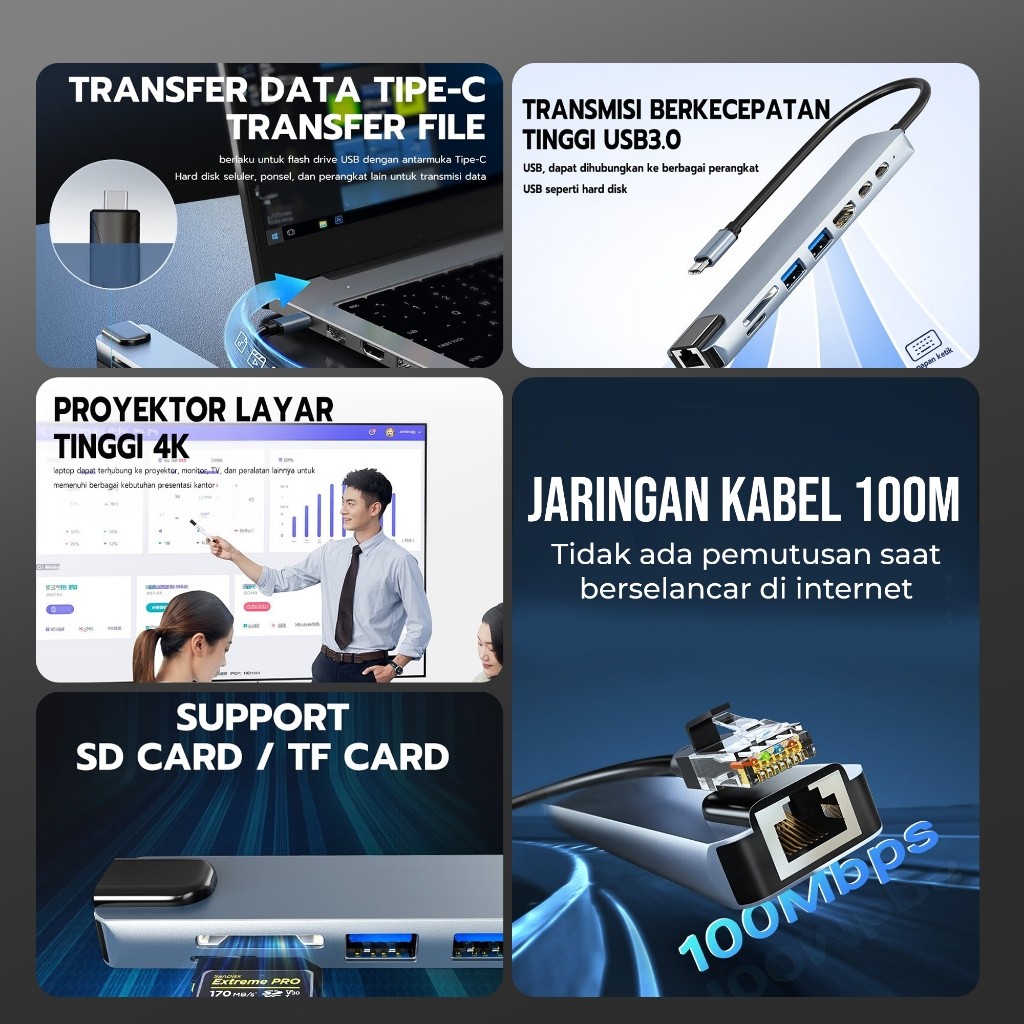 Skytime USB Hub 8 in 1 Adapter Converter type c to HDMI Type C SD/TF Card 4K Kabel 100M Fungsi OTG usb hub type c - DS01