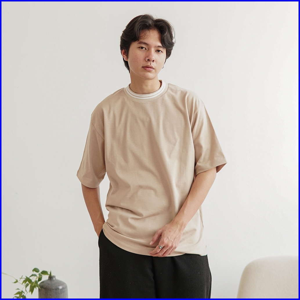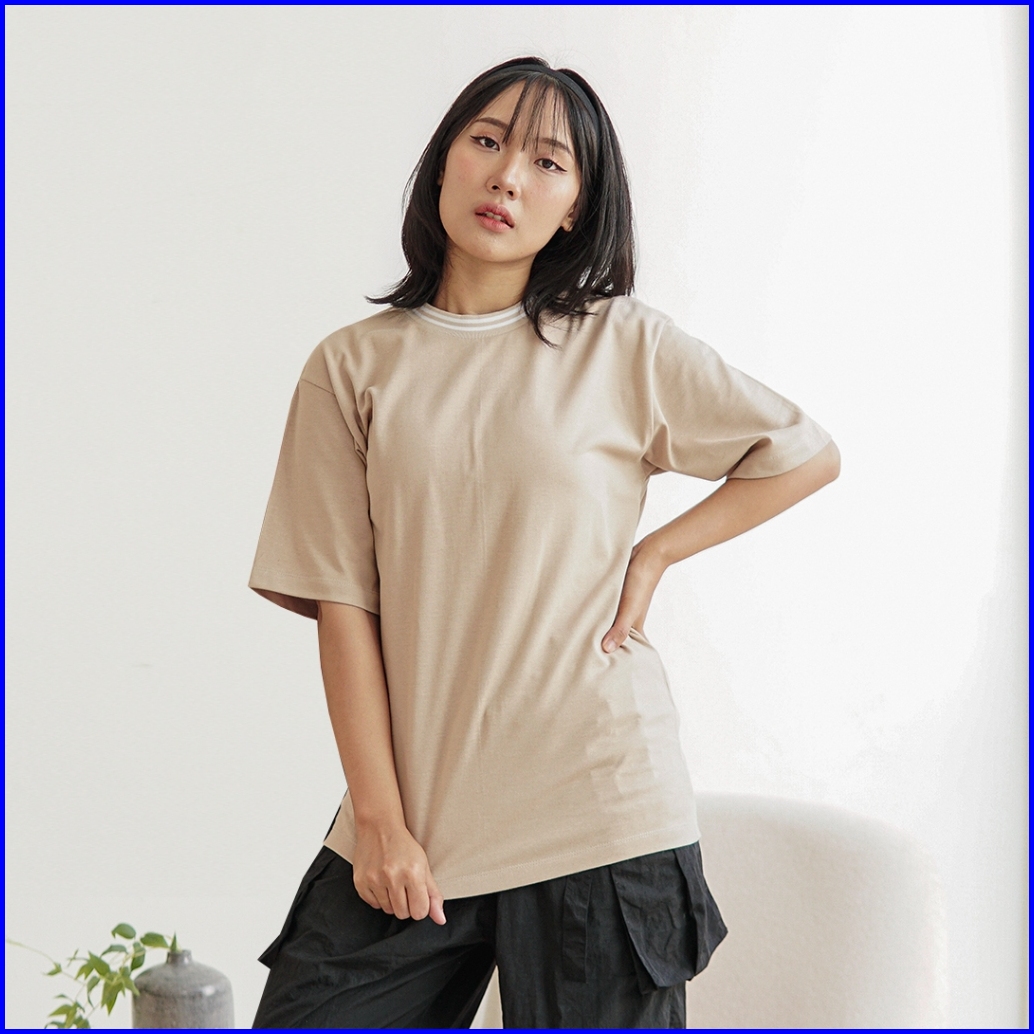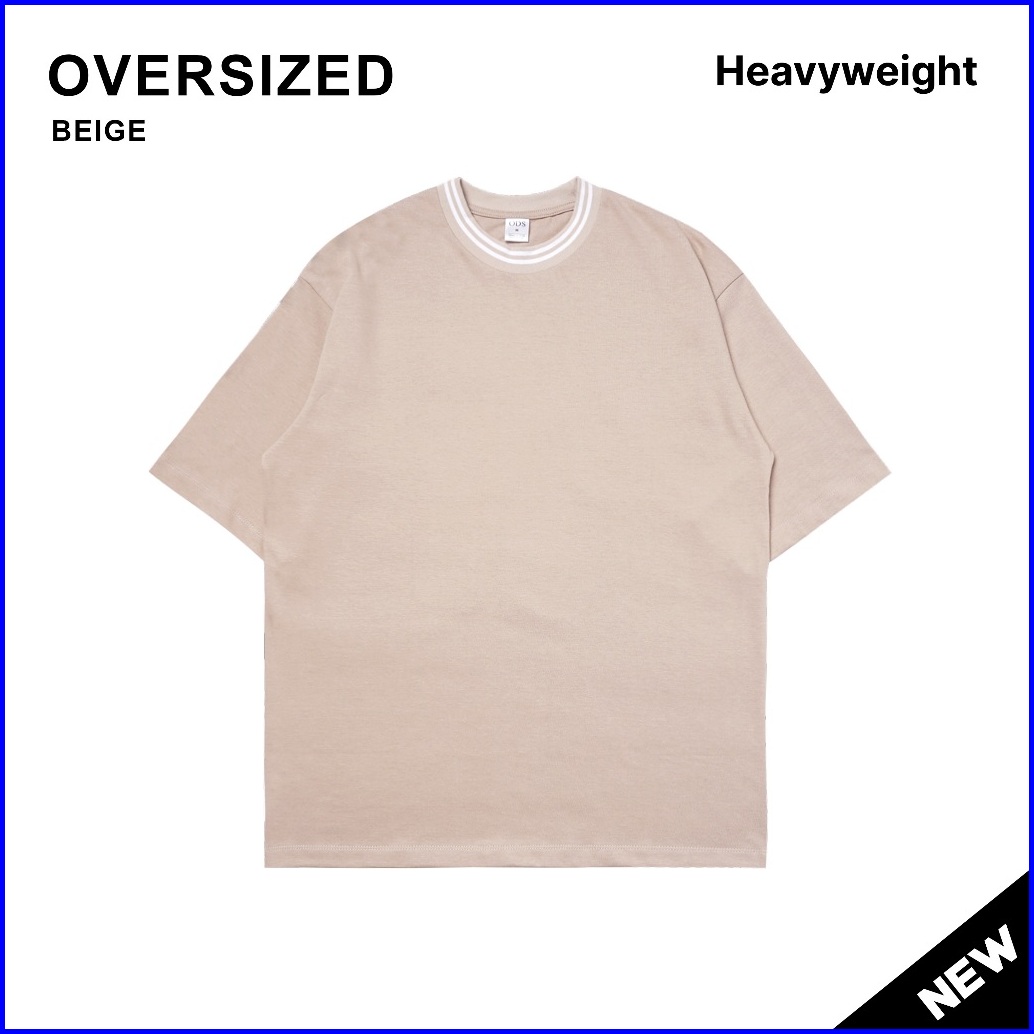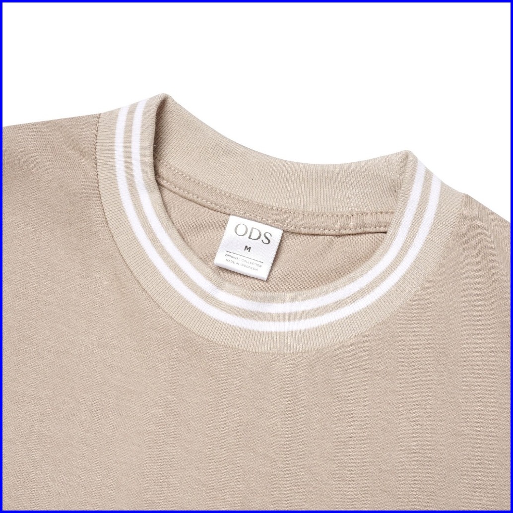 Ods Oversized Heavyweight Cotton 16s T-shirt With Striped Collar - Beige