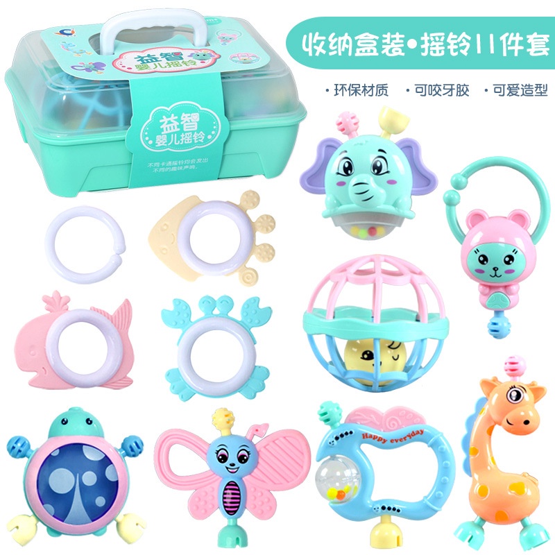 11pcs Bayi Tangan Rattle Set Kotak Hadiah Mainan Teether Menggenggam Pendidikan Mainan 0-1 tahun