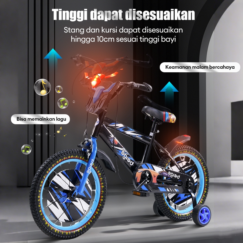 BEIGE Sepeda Anak 2-12 Tahun Rangka Baja Karbon Roda Bantu Ban Karet Aman Belajar Lampu