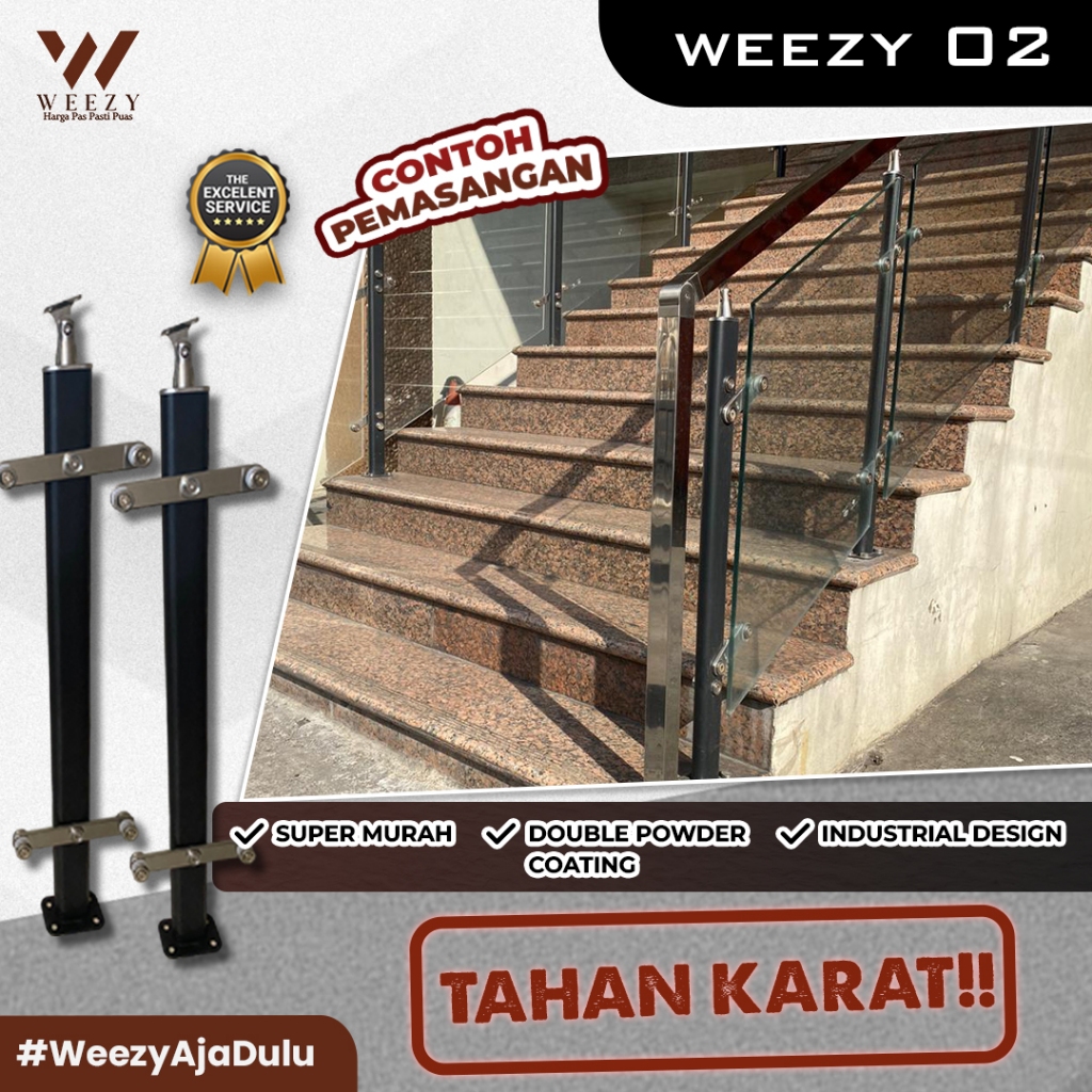 RAILING TANGGA TERMURAH - RAILING KACA [Weezy 02] Railing tangga dengan Powder Coating Hitam - FREE TUTUP DYNABOLT