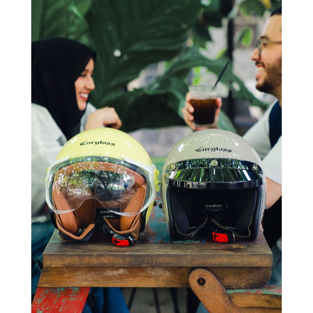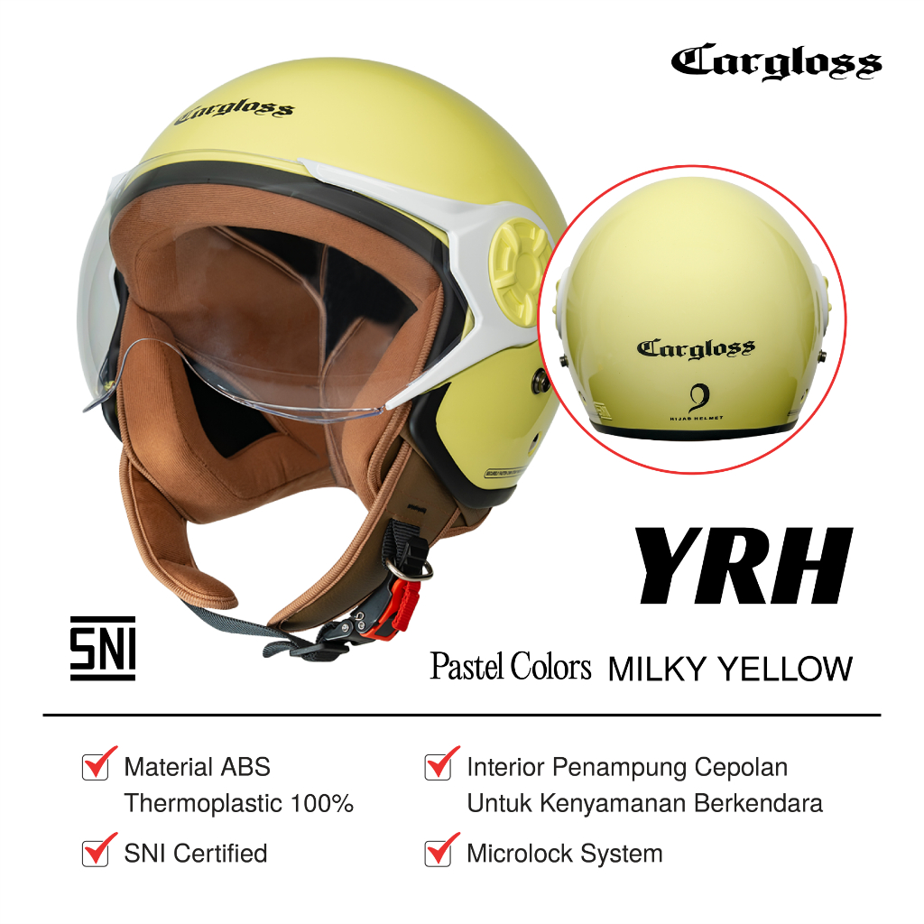 Cargloss YRH Hijab Retro Helm Half Face - Milky Yellow