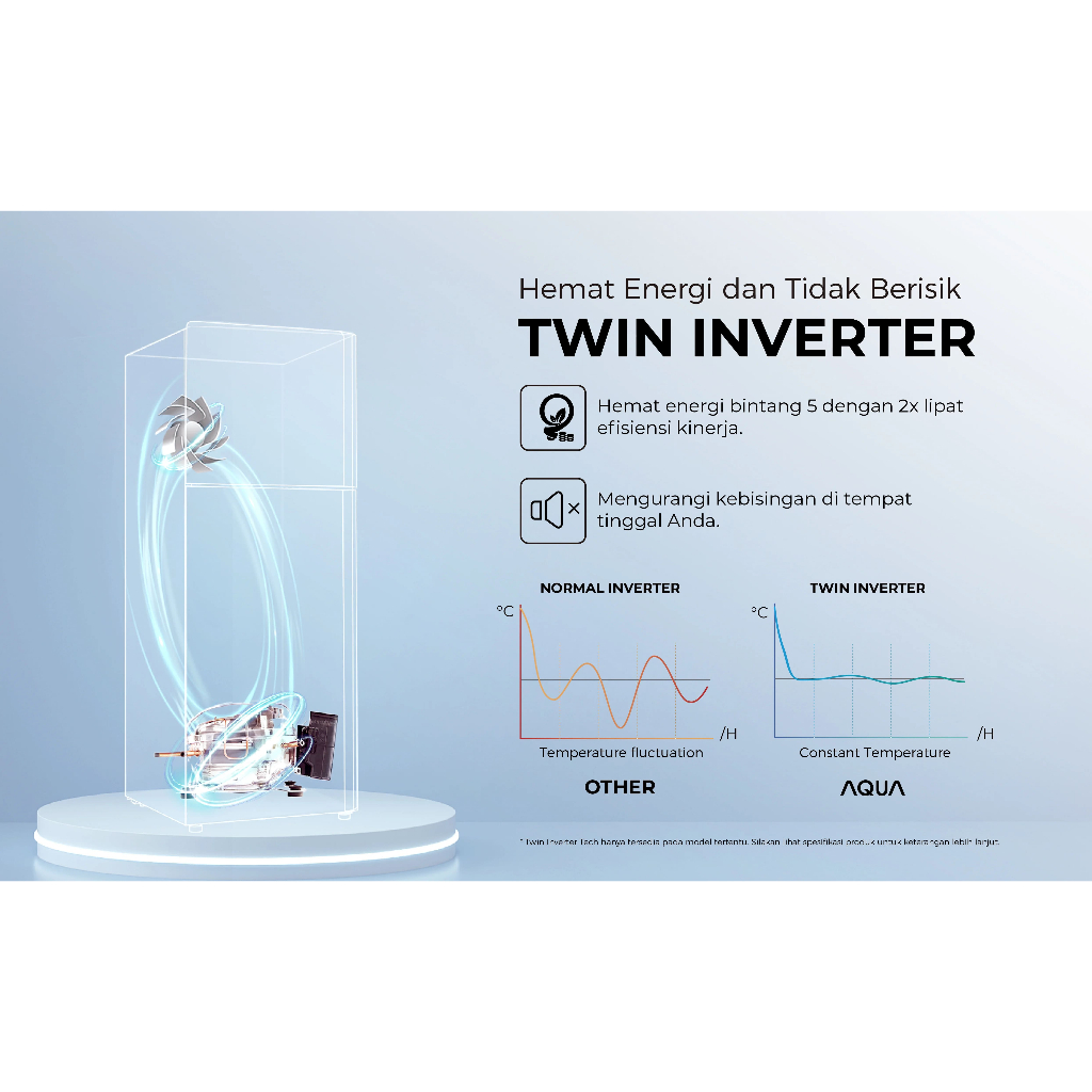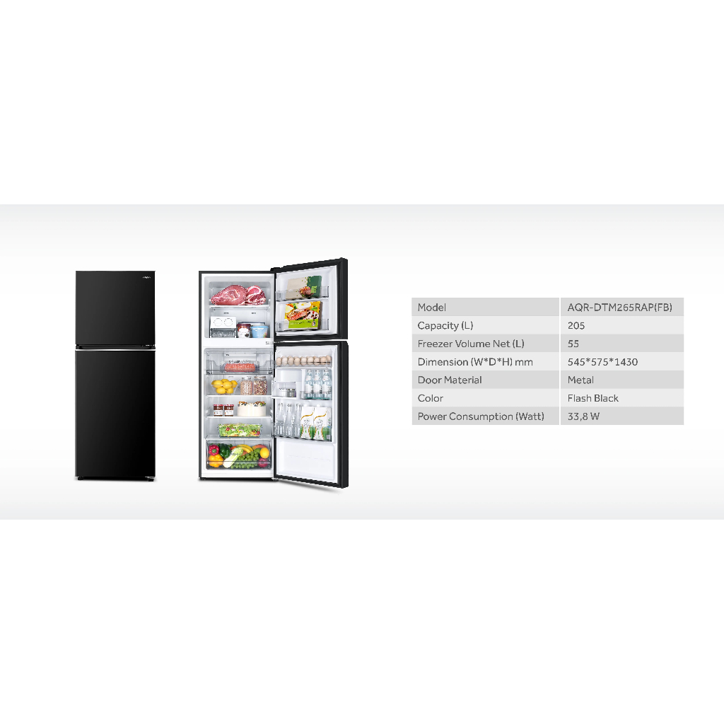 Kulkas 2 Pintu AQUA AQR DTM 285 RAP FB Magic Neo Turbo Cooling Ice Twist Twin INVERTER 34 Watt 280 L