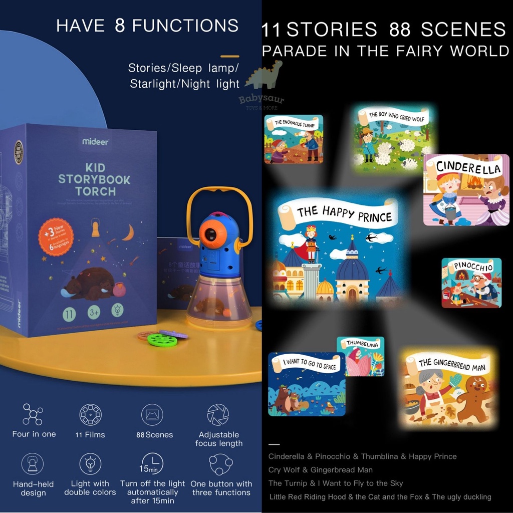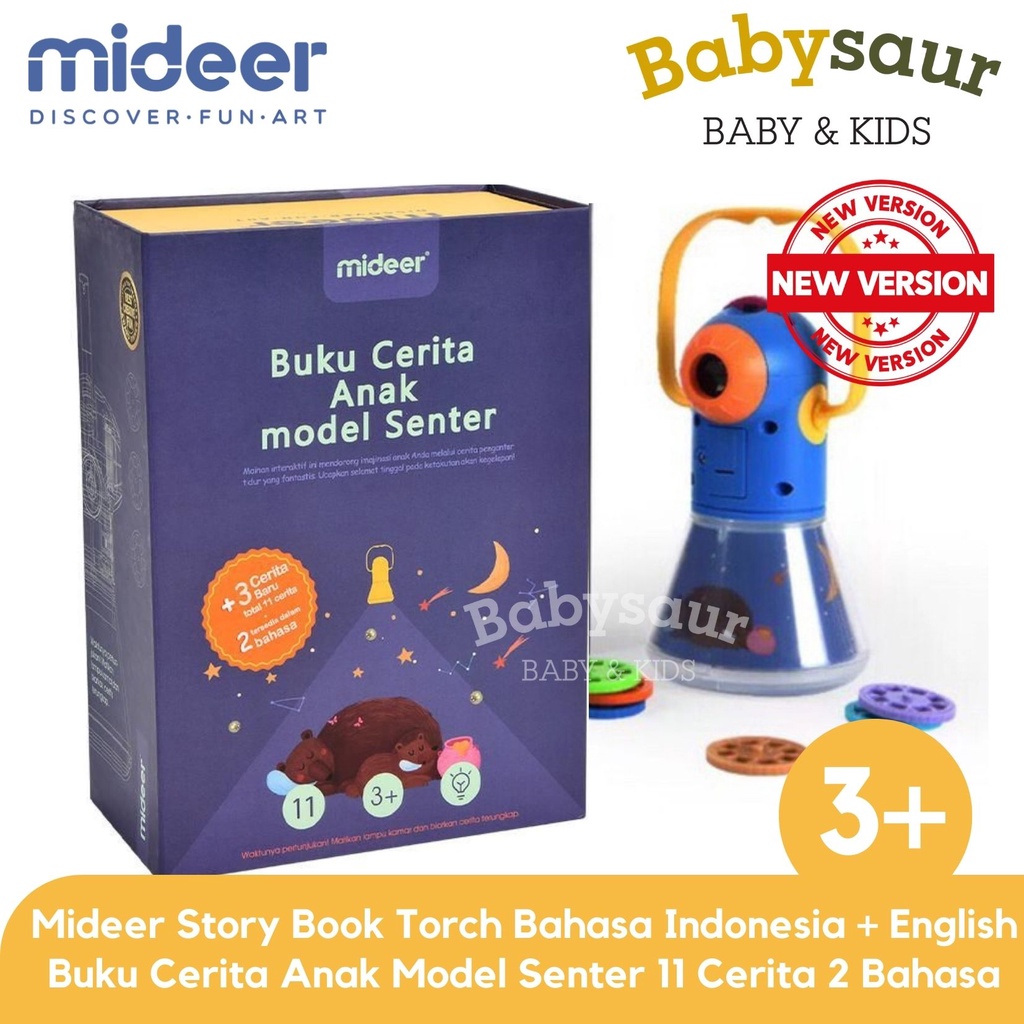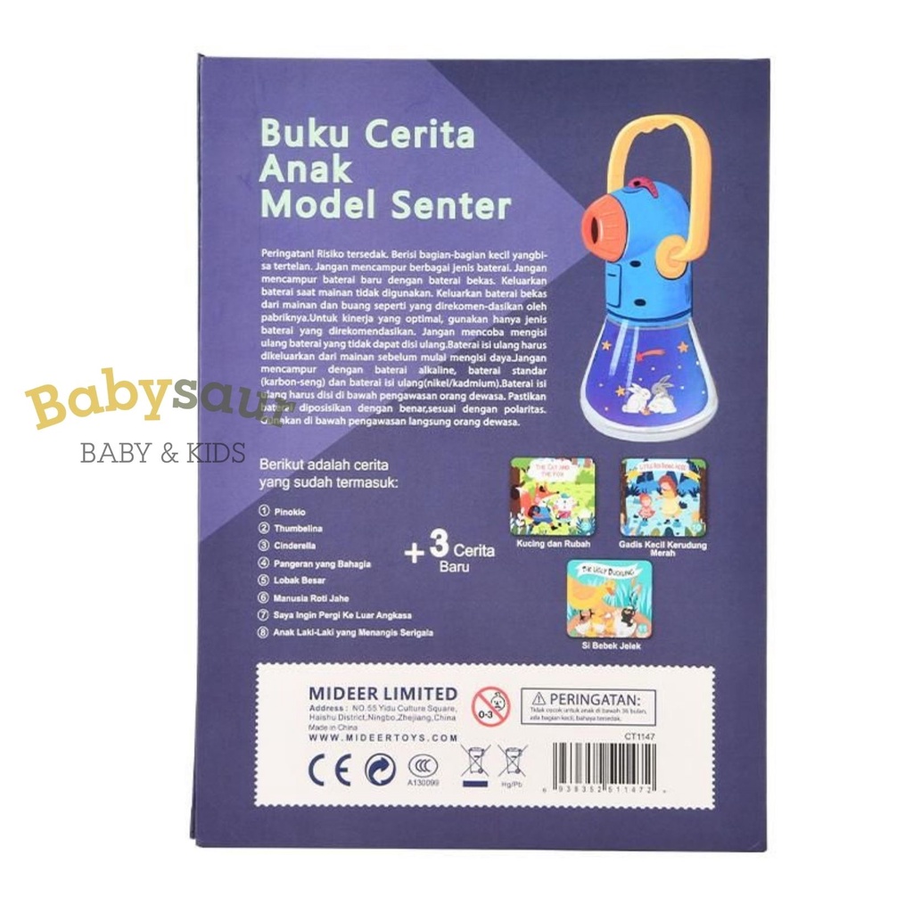 [Mall] Mideer Buku Cerita Anak Model Senter VERSI TERBARU 11 Cerita + Bahasa Indonesia Inggris Storybook Proyektor Story Book T