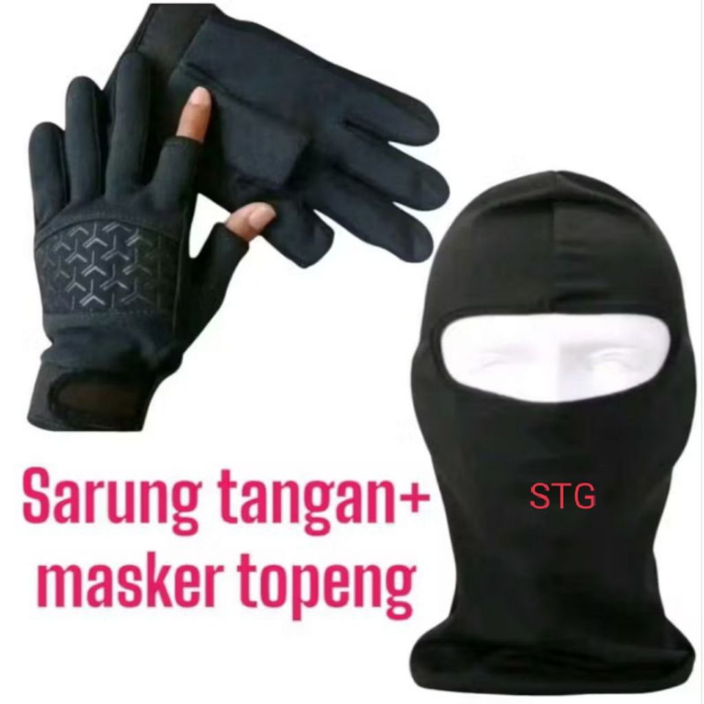 Paket Motoran Sarung Tangan Dan Masker Topeng Balaclava Hitam Polos Pria Dewasa