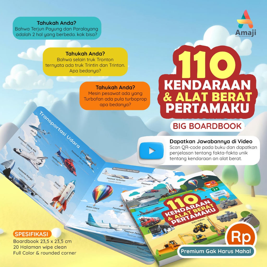 BIG BOARDBOOK '110 Kendaraan dan Alat Berat Pertamaku' - Amaji.ID | Buku Anak 2 Tahun | Cover Custom