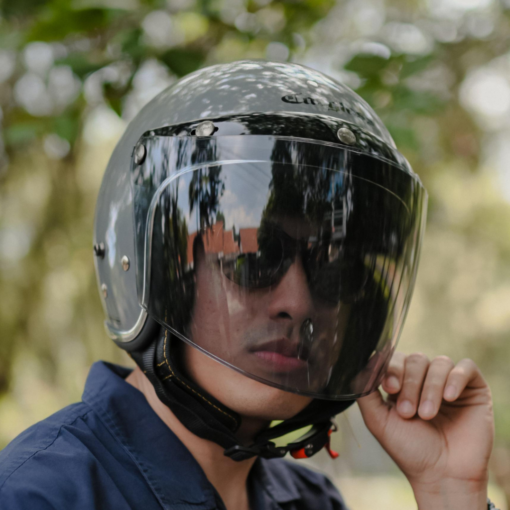 Cargloss CFM Retro Visor Pet Helm Half Face - Anchor Grey