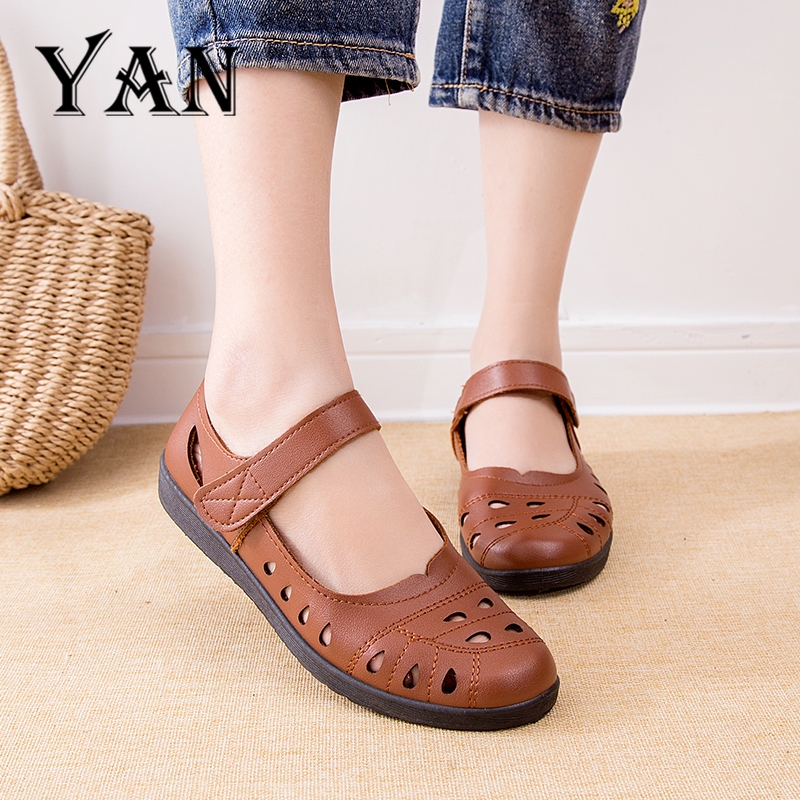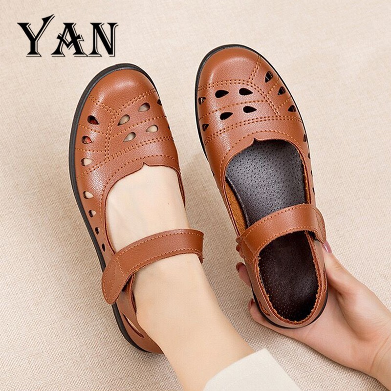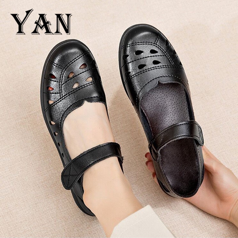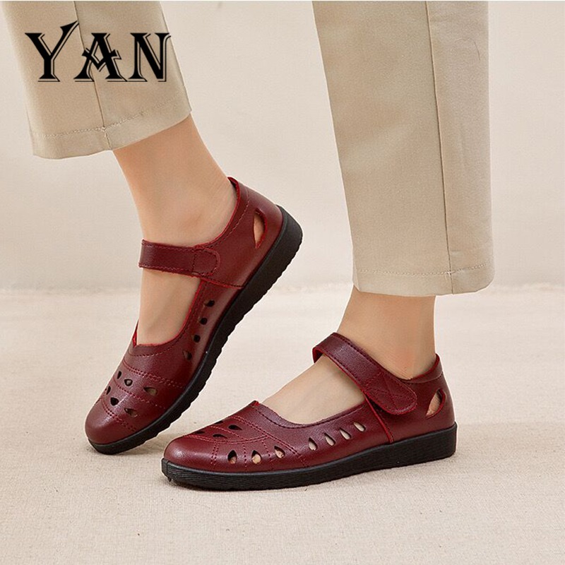 YAN Sepatu Kulit Wanita Flatshoes Casual Sepatu Kerja Wanita 【Add 1 size】