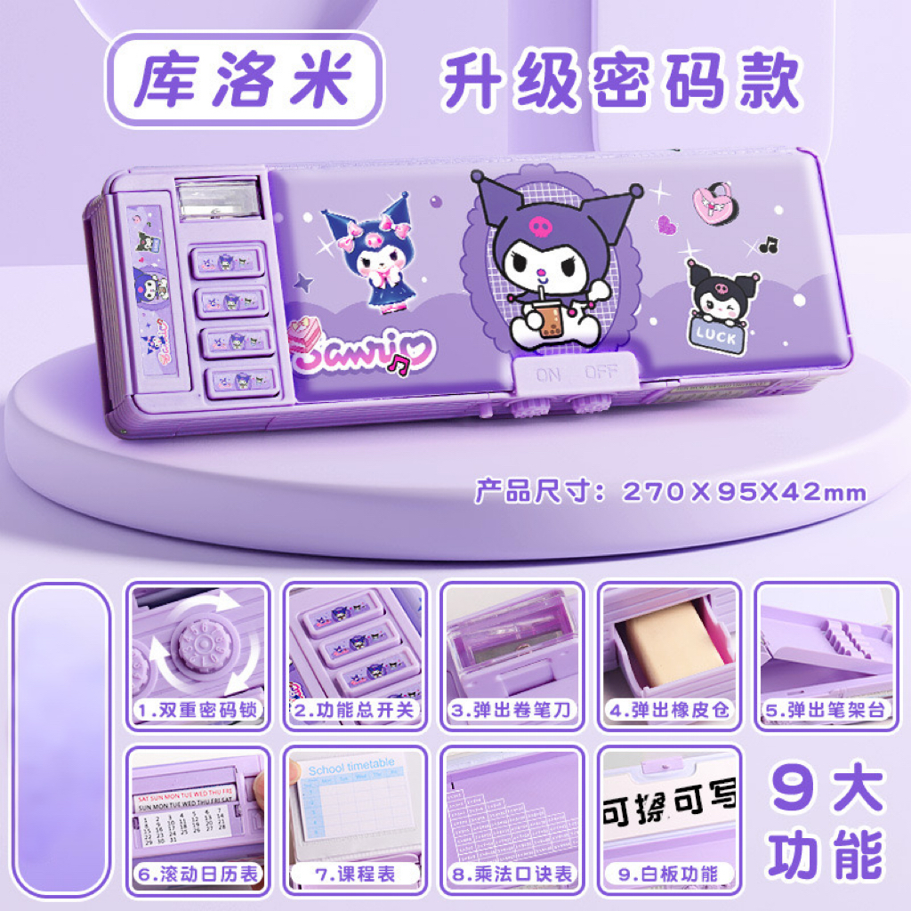 [Mall] Kotak Alat Tulis Multifungsi Kuromi untuk Anak Perempuan 2024 Kotak Pensil Otomatis Baru Kata Sandi Kompartemen Mesin Ko