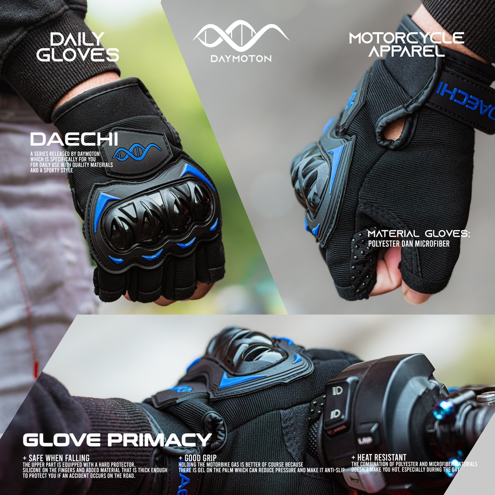 DAYMOTON Sarung Tangan Motor Half Finger Serie DAECHI Pria Wanita Protector Anti Slip Touring Harian