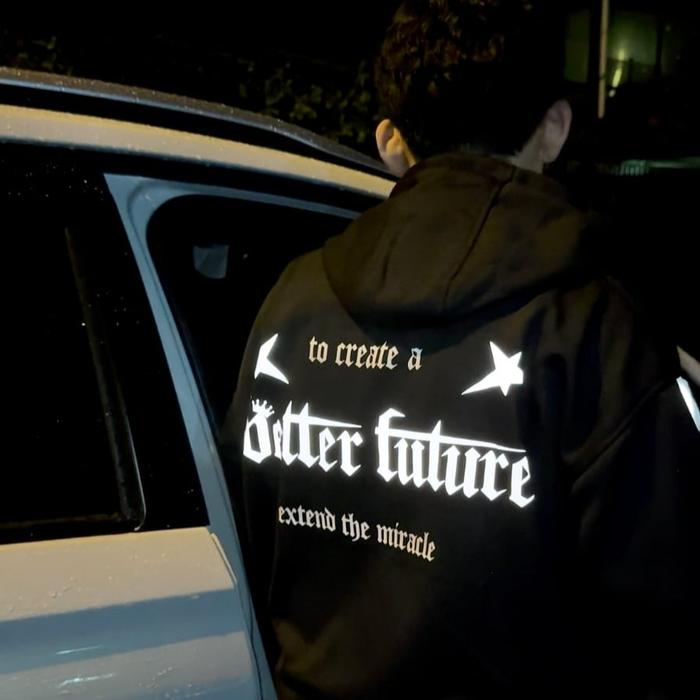 OFFLINE HOODIE JUMPER OVERSIZE BETTER FUTURE / SABLON MENYALA / REFLEKTIF / HOODIE UNISEX PRIA DAN WANITA / HOODIE AESTHETIC - HITAM, M