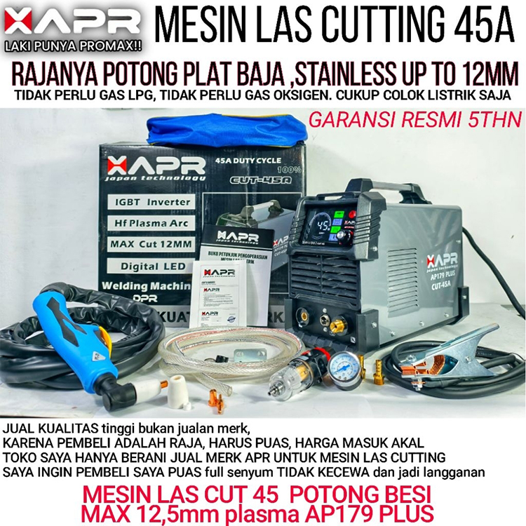 BIG PROMO APR MESIN LAS CUTTING PLASMA 45A 12mm AP179+ potong plat baja besi stainless xapr tanpa gas LPG tanpa oksig