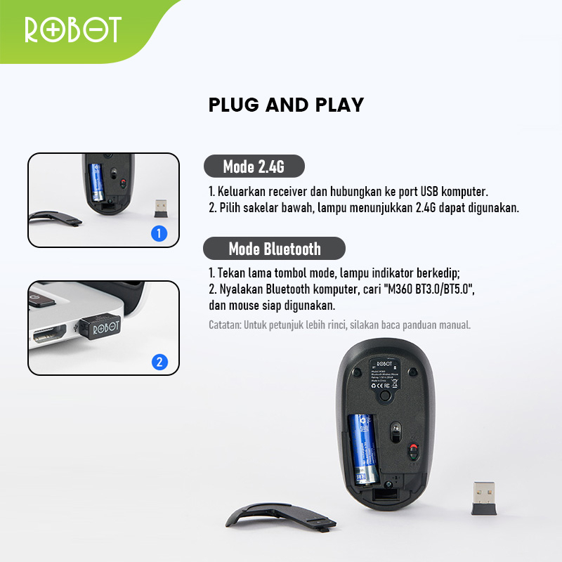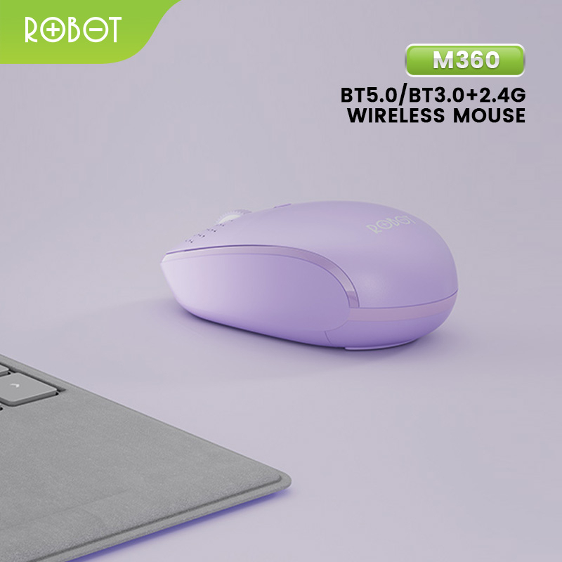 ROBOT Mouse USB 2.4G Wireless & Bluetooth 5.0 Dual Mode Connection M360 Black 18000 DPI Original - Garansi 1 Tahun