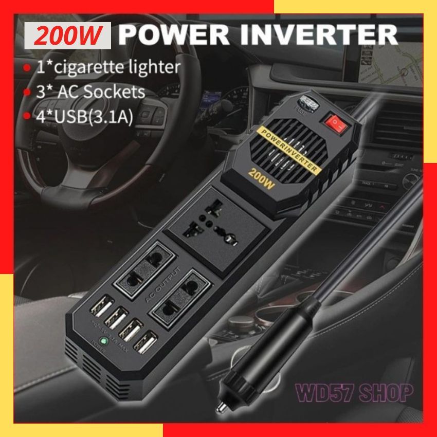 Colokan Cas Charger Mobil USB HP Leptop Power Adapter Inverter Car Stop Kontak Output Dc Ac 2 Socket Universal 4 Usb Por