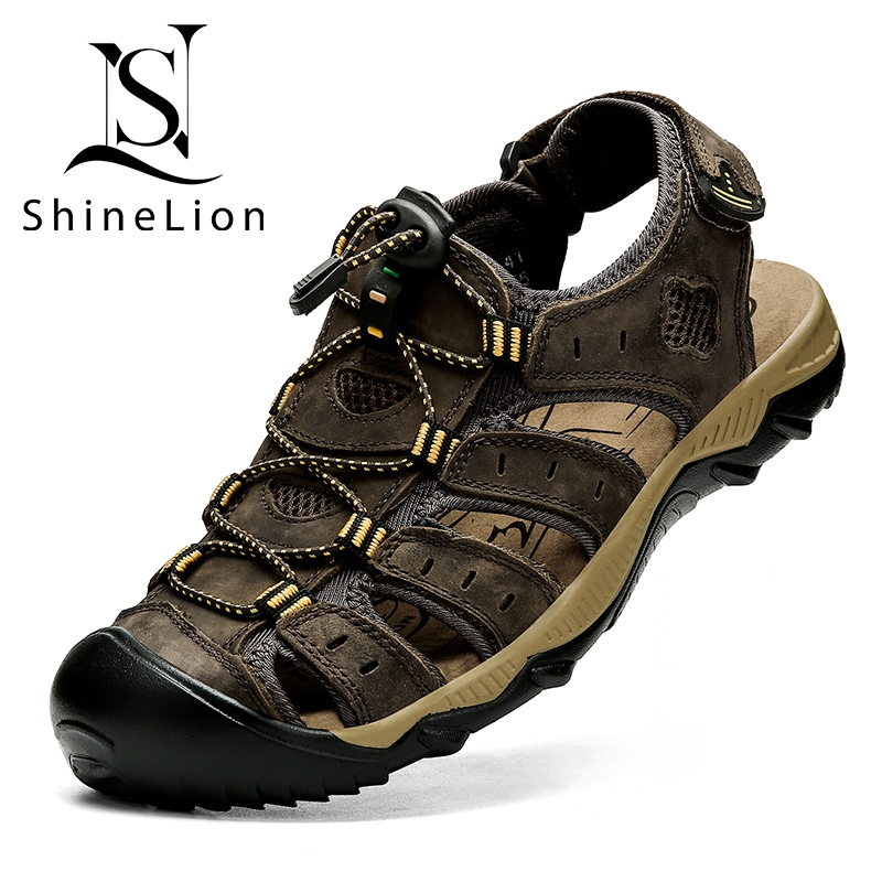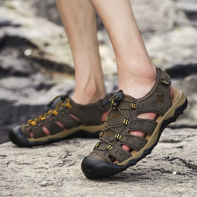 KP-2026 Sandal Cowok Kekinian Original 100 PERSEN Sandal Kulit Asli Pria Gunung Trendy Outdoor Pantai Sepatu Sandal Pria Keren