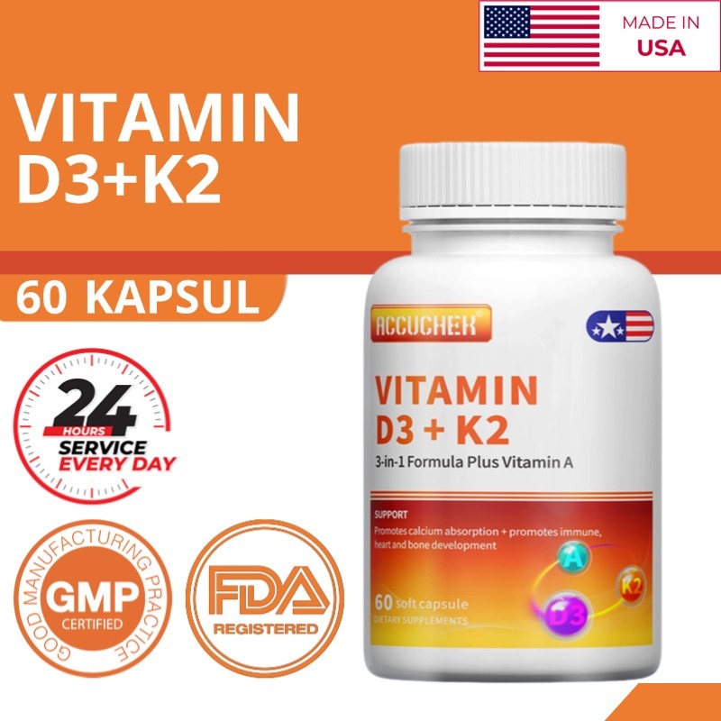 Vitamin D3 + K2 - Suplemen Mk7 Untuk Mendukung Perawatan Sendi, Imunitas, Kekuatan Tulang Dan Kesehatan Jantung 60 Kapsu