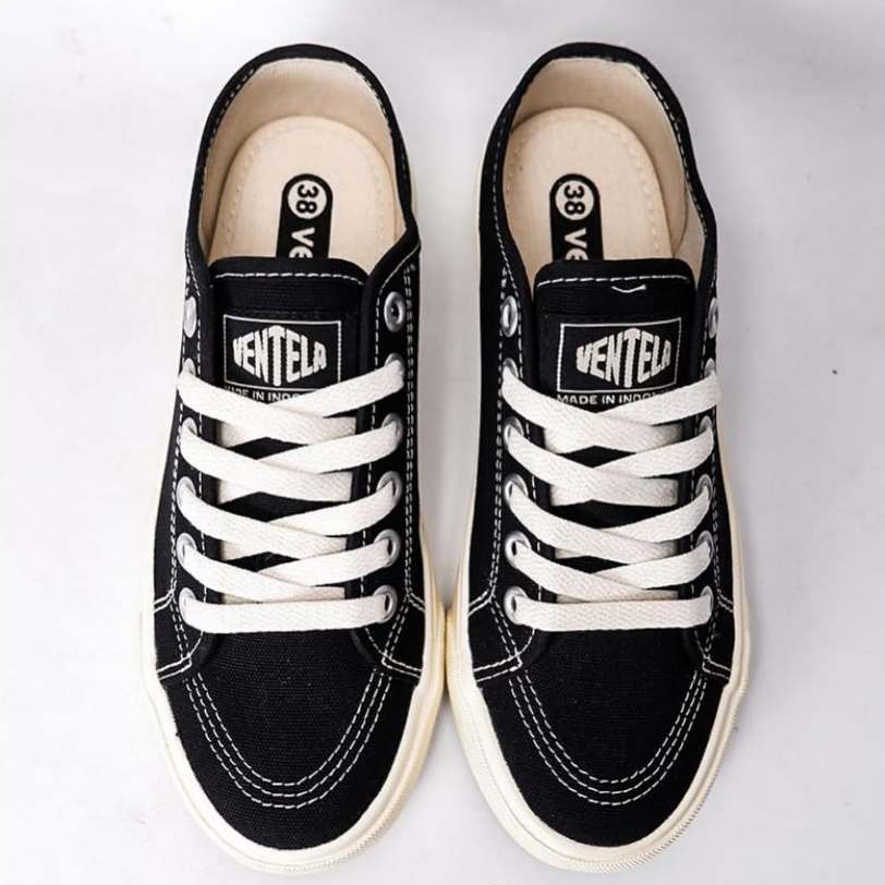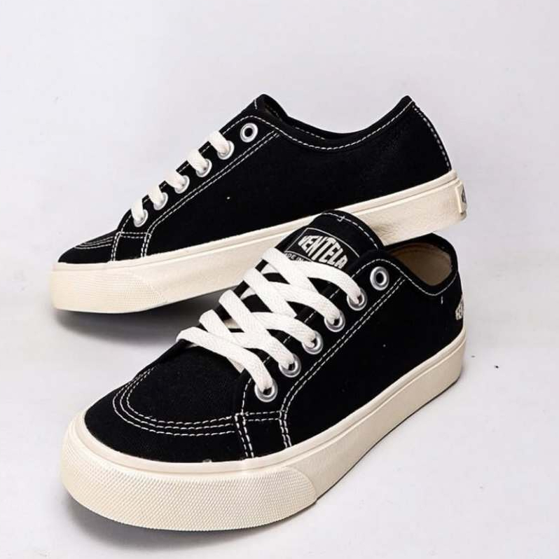 Sepatu Canvas Ventela Alpha Low Black Natrual // Sepatu Sekolah Hitam Putih Shoes Pria&Wanita