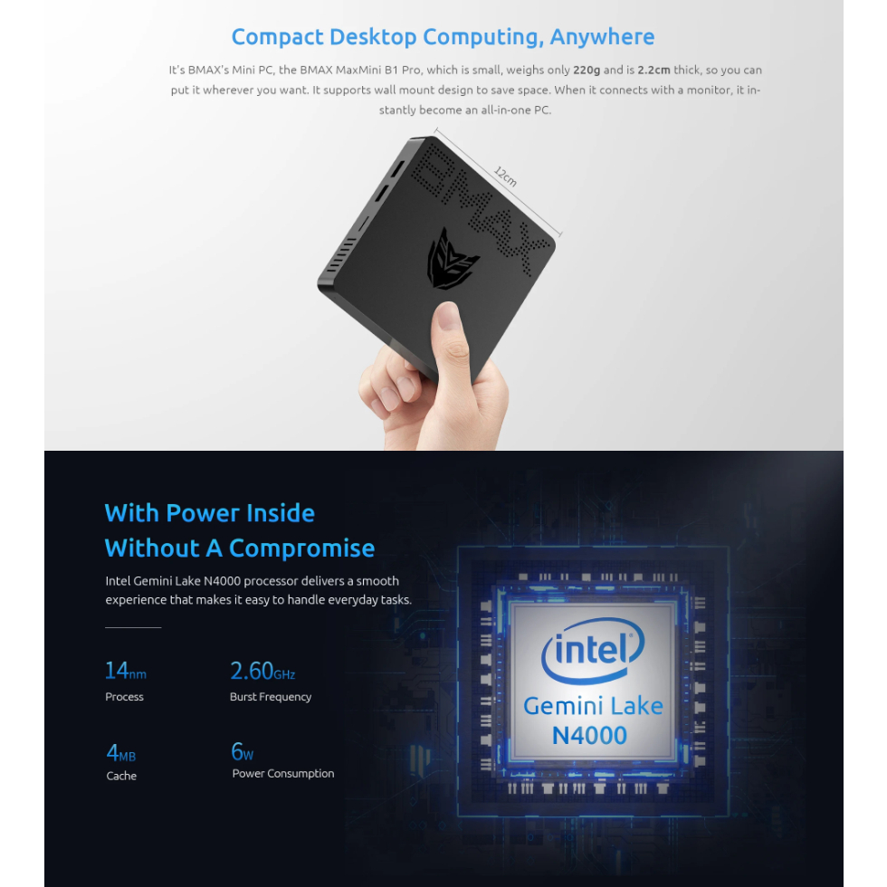 BARIA Mini PC BMAX B1 PRO 8/128GB Intel N4000 Windows 11 Pro