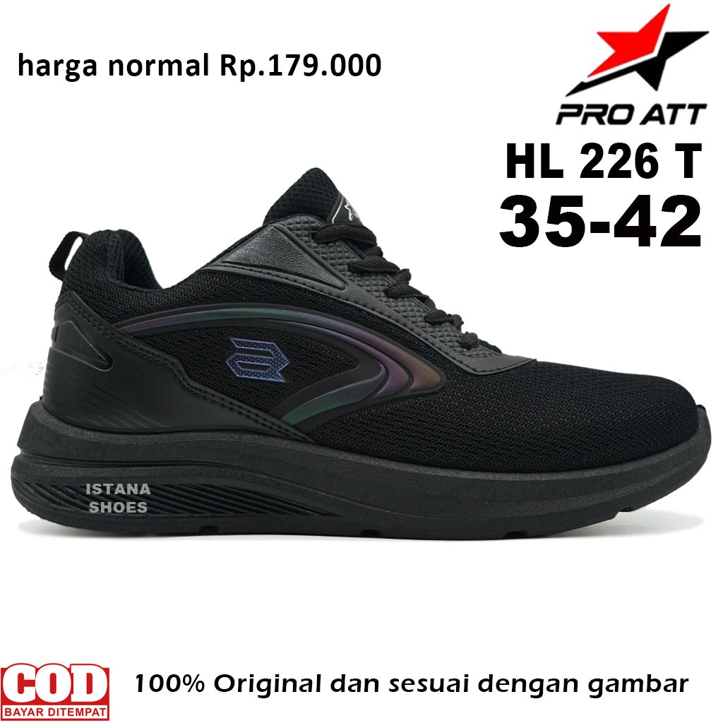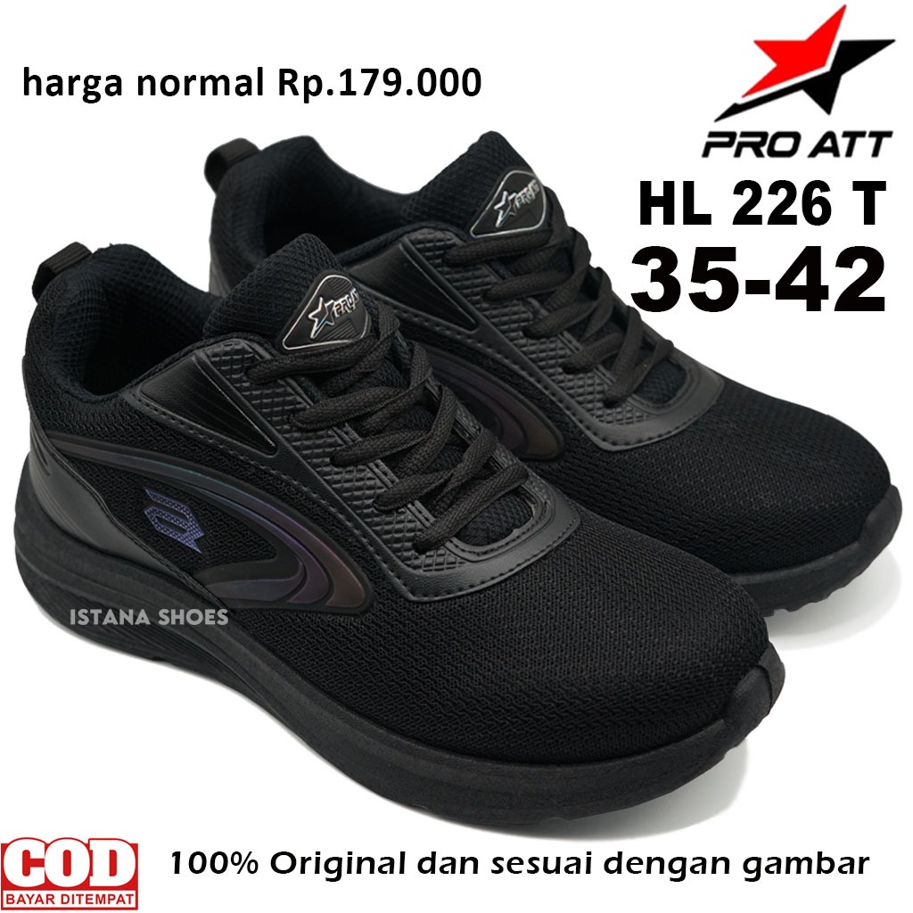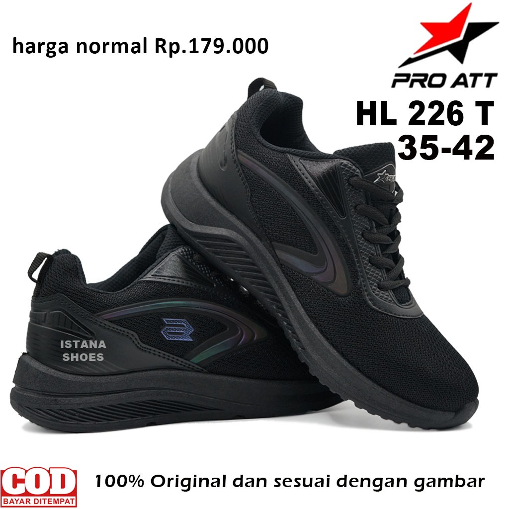 Sepatu Sekolah Anak Laki Laki Perempuan SD SMP SMA REMAJA D3W4SA PRO ATT HL 226 T Full Hitam Sneakers