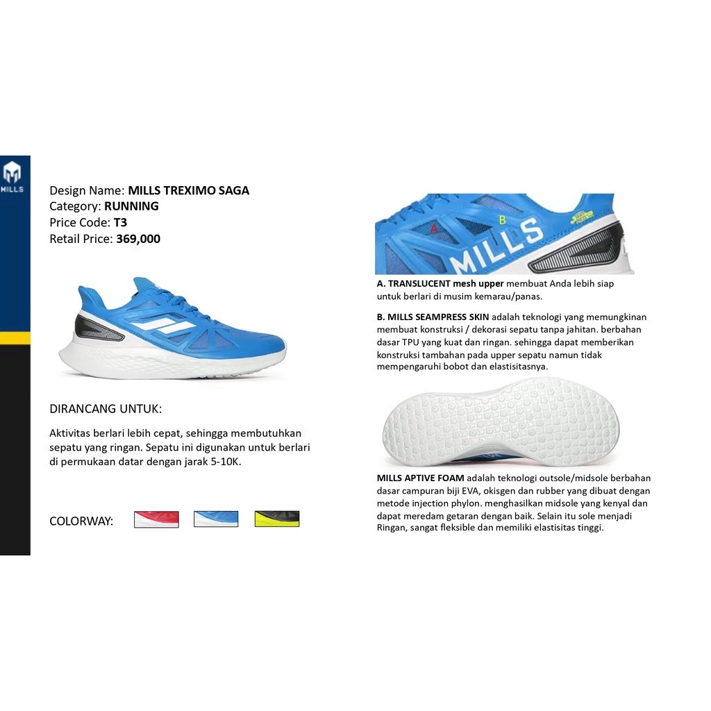 Sepatu Running Mills Original Sepatu Lari Shoes Treximo Saga Pria Wanita - Rank Sports Mills Official Store