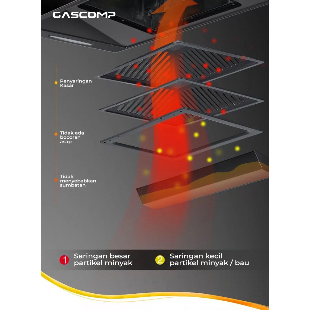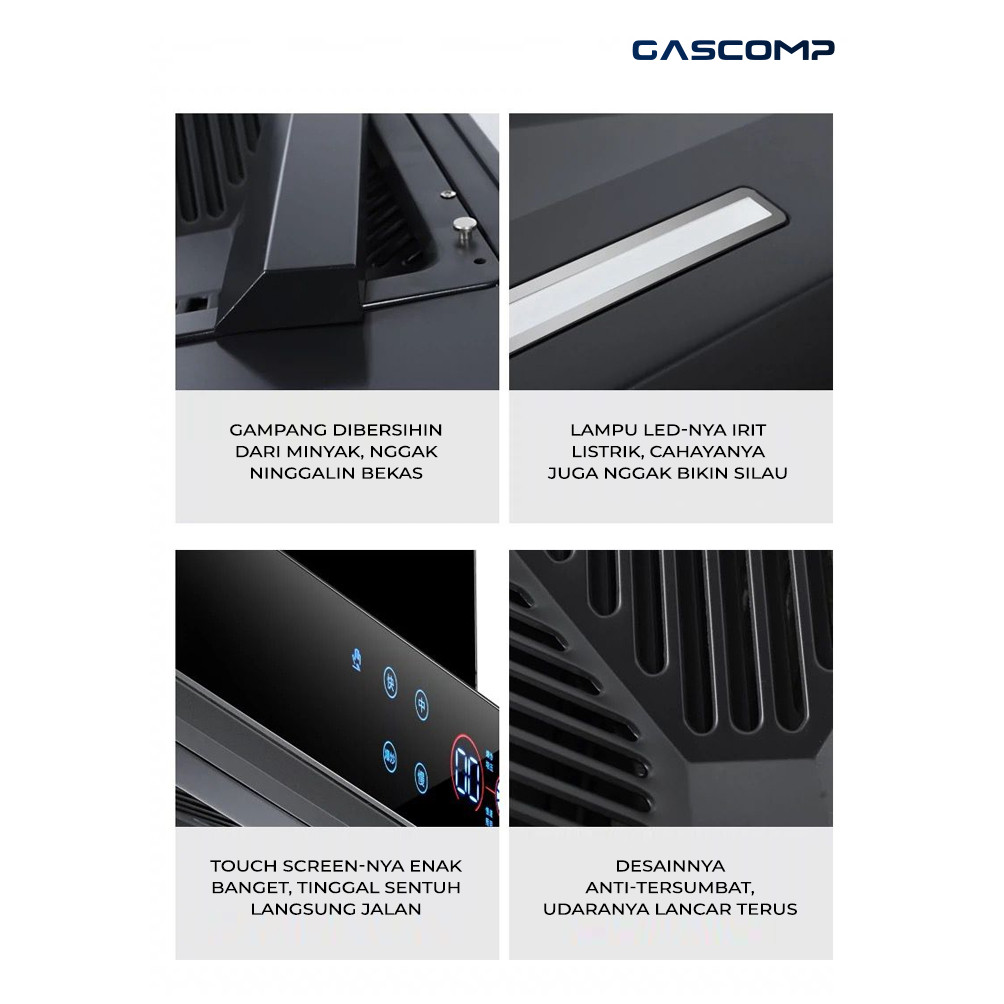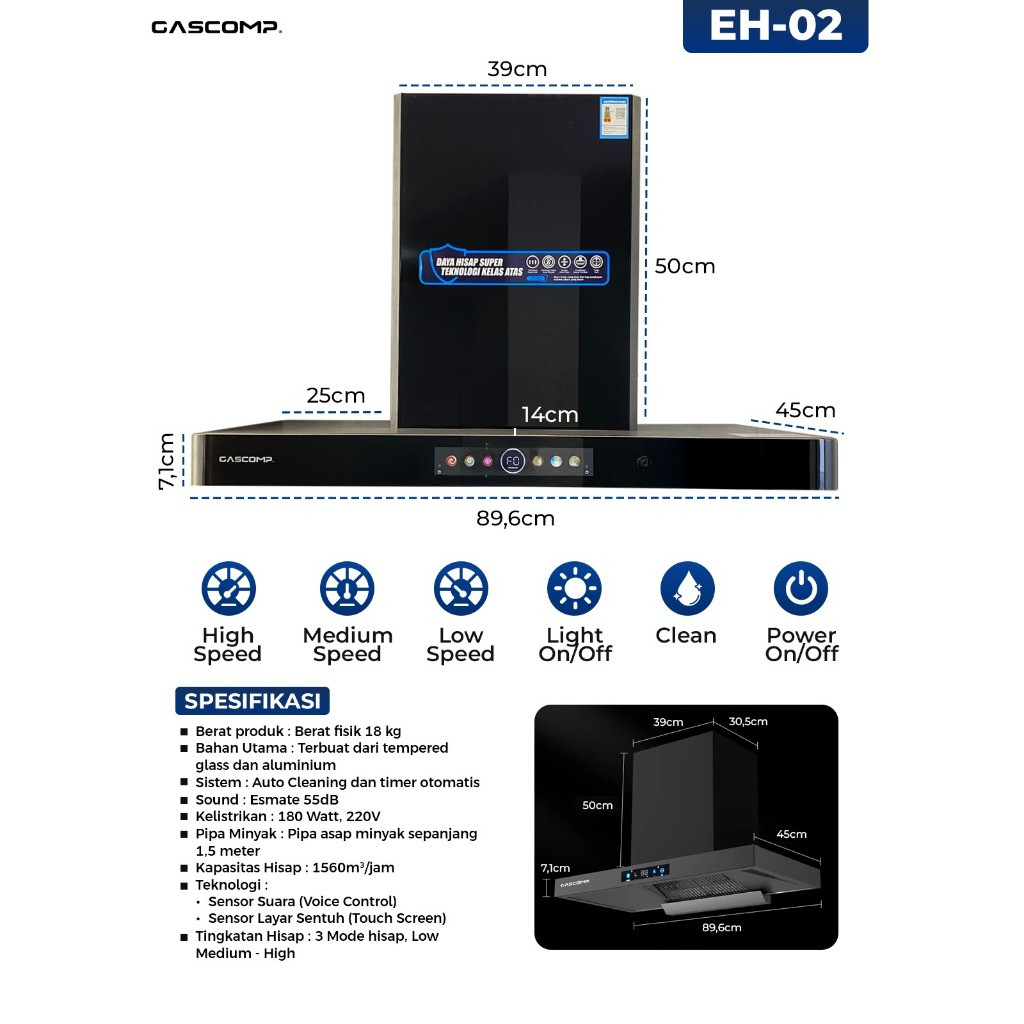 GASCOMP Cooker Hood daya hisap kuat dan smart dengan sensor voice Exhaus Hood (EH-02) Exhaust Hood