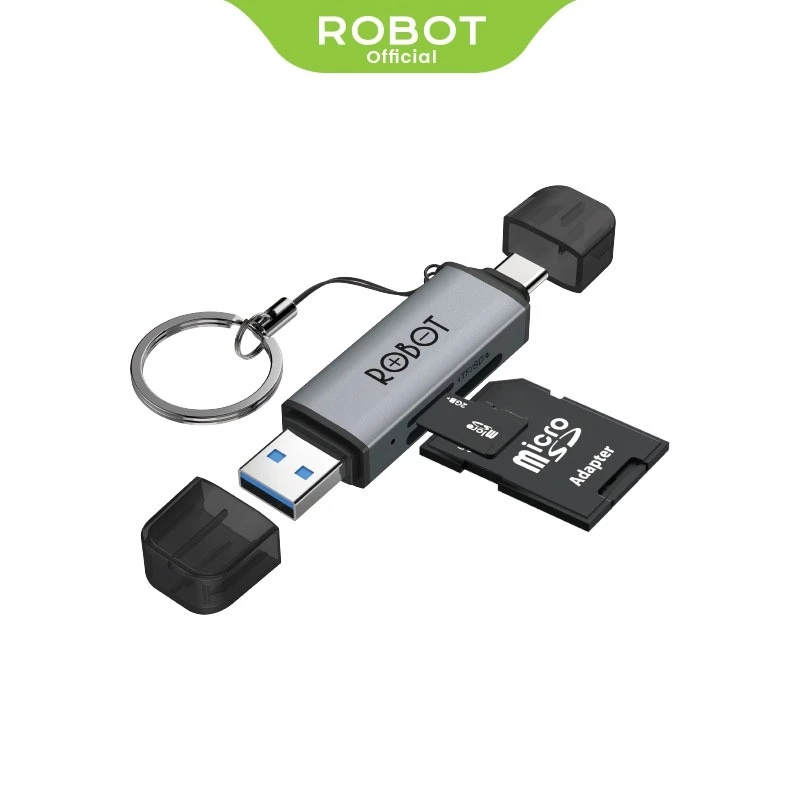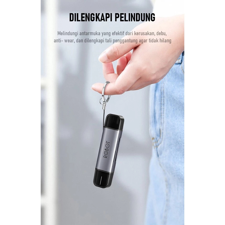 ROBOT Card Reader CR202S Upgrade 2 in 1 USB 3.0 Type-C OTG Memory Card Adapter Micro SD TF Original Garansi 1 Tahun