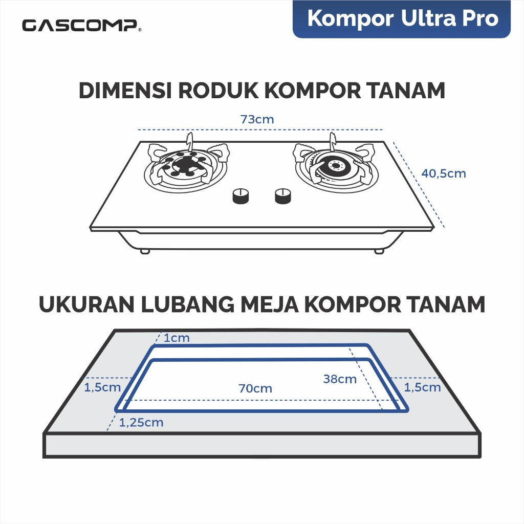 GASCOMP Kompor Tanam 2 Tungku Api Tornado Kompor Gas Tanam Kaca 2 Tungku Ultra Pro