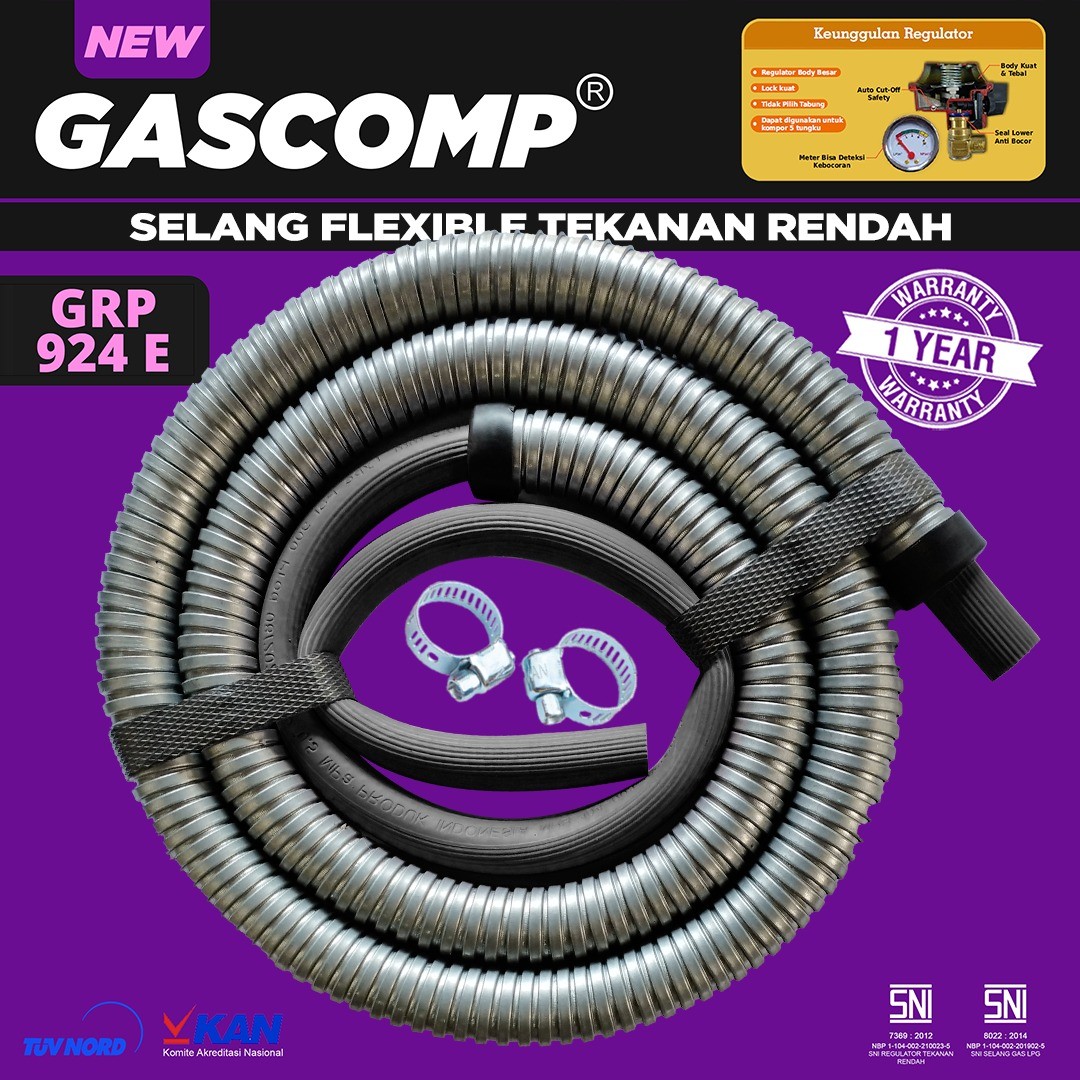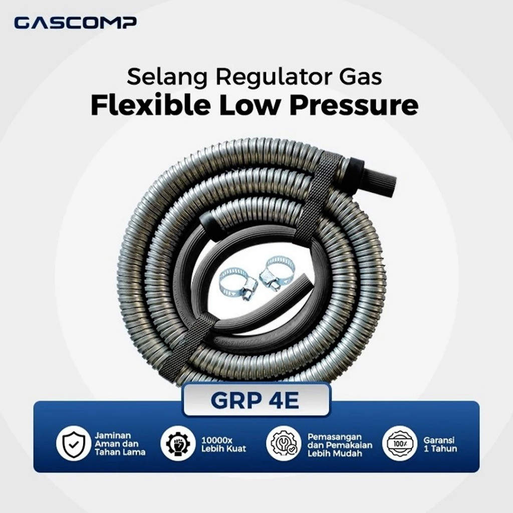 GASCOMP Selang Regulator Gas Metal Anti Tikus dan Anti Karat Selang Gascomp GRP 4E (HP 1.8M)