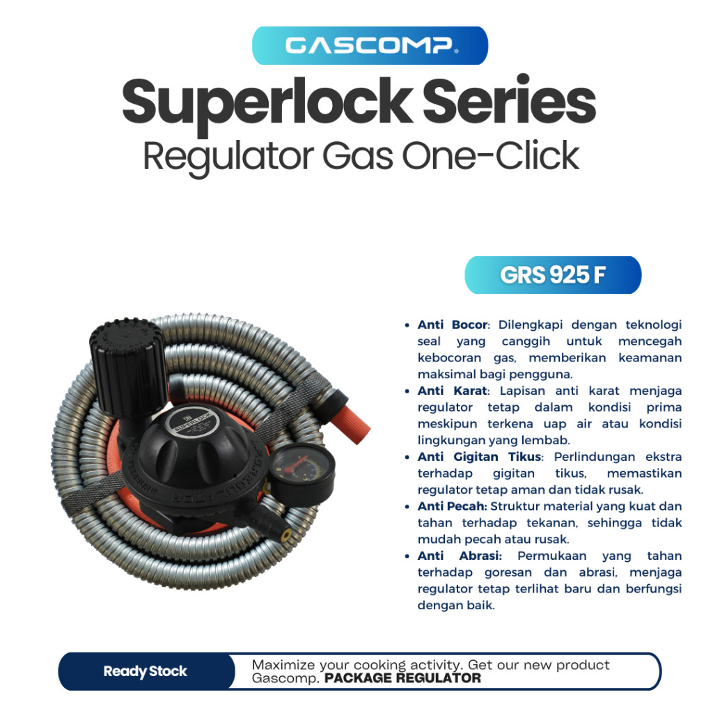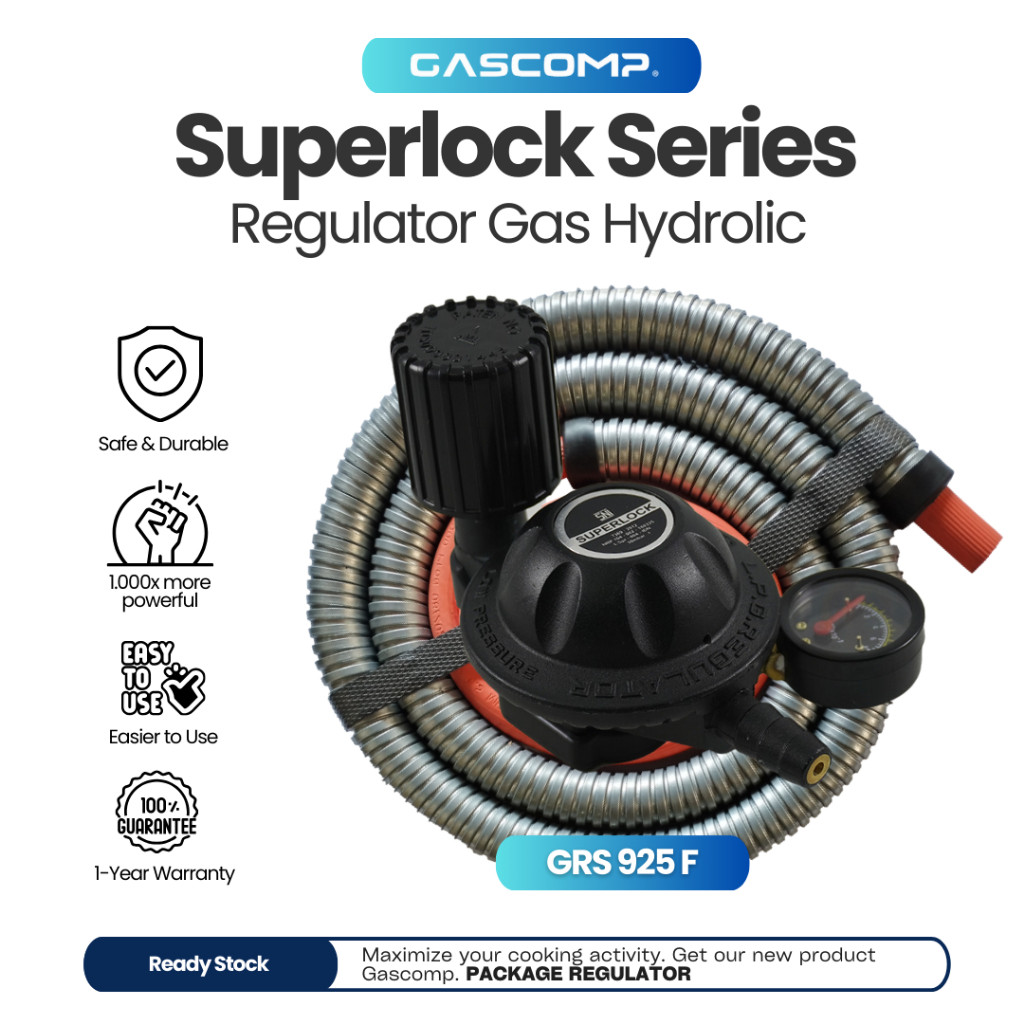 GASCOMP Superlock Regulator Gas Low Pressure dengan Selang Flexible 5 Lapisan Kuat dan Awet Selang Anti Bocor