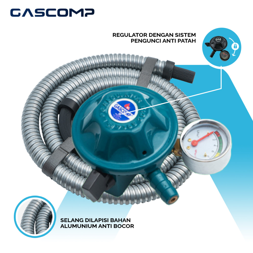 GASCOMP Paket Regulator Meter + Selang (GRT-924E) Regulator Gas Anti Bocor SNI