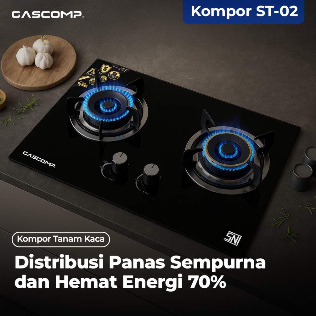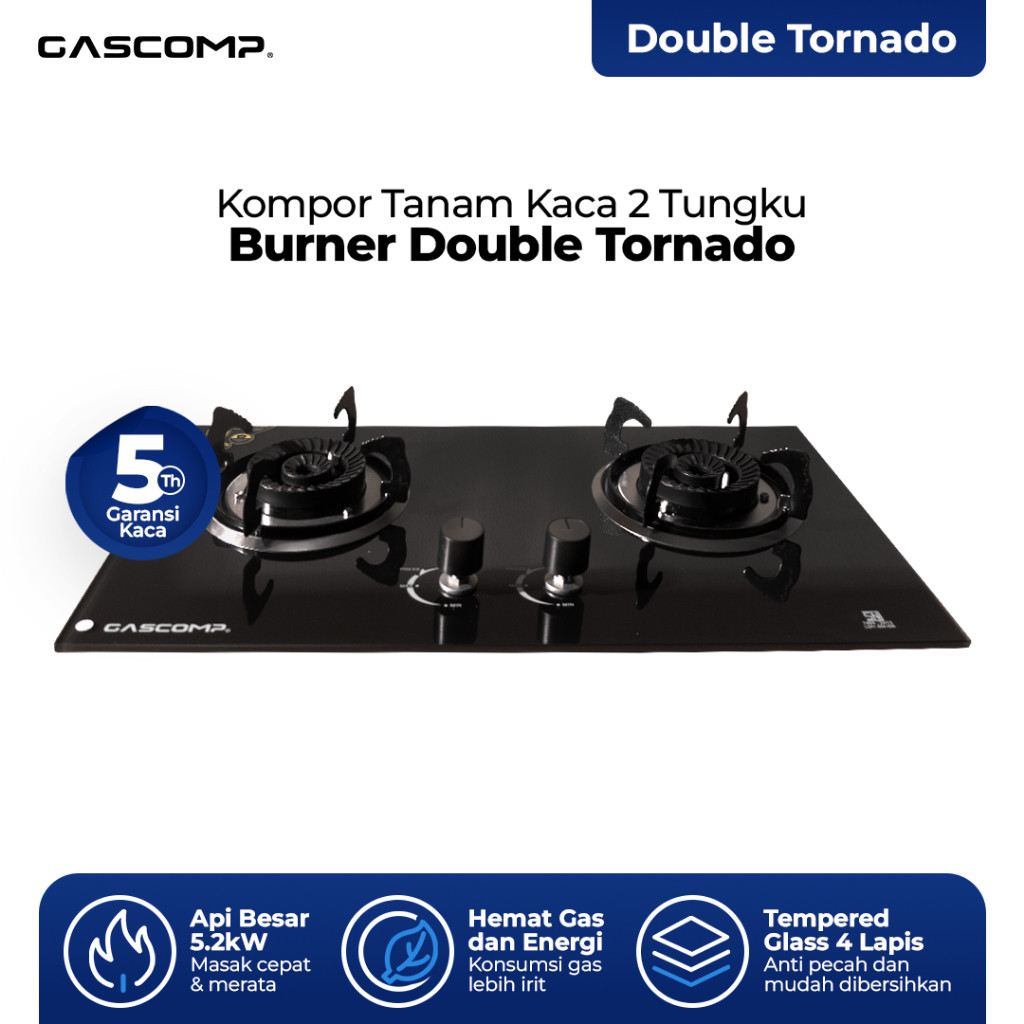GASCOMP Kompor Tanam Elektrik Kaca 2 Tungku Double Tornado