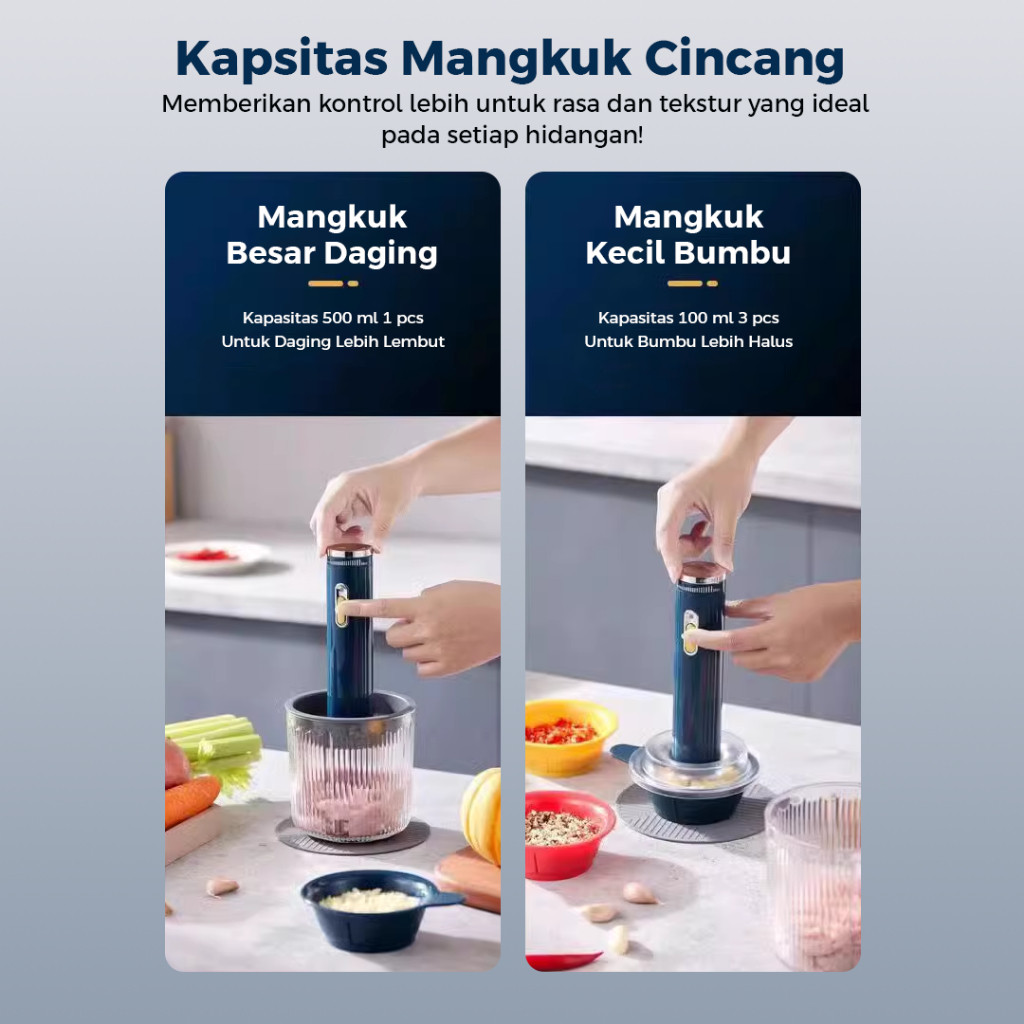 GASCOMP Chopper Portable Mini 3 in 1 | Blender Bumbu, Daging & Sayur | Rechargeable 2000mAh