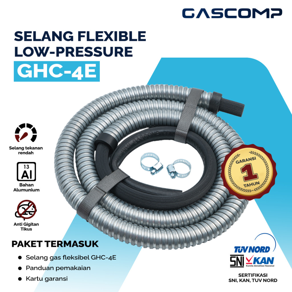 GASCOMP Selang Regulator Gas Flexible (GHC 4E) Selang Gas Anti Bocor Tekanan Rendah Selang Kompor Gas Terbaik