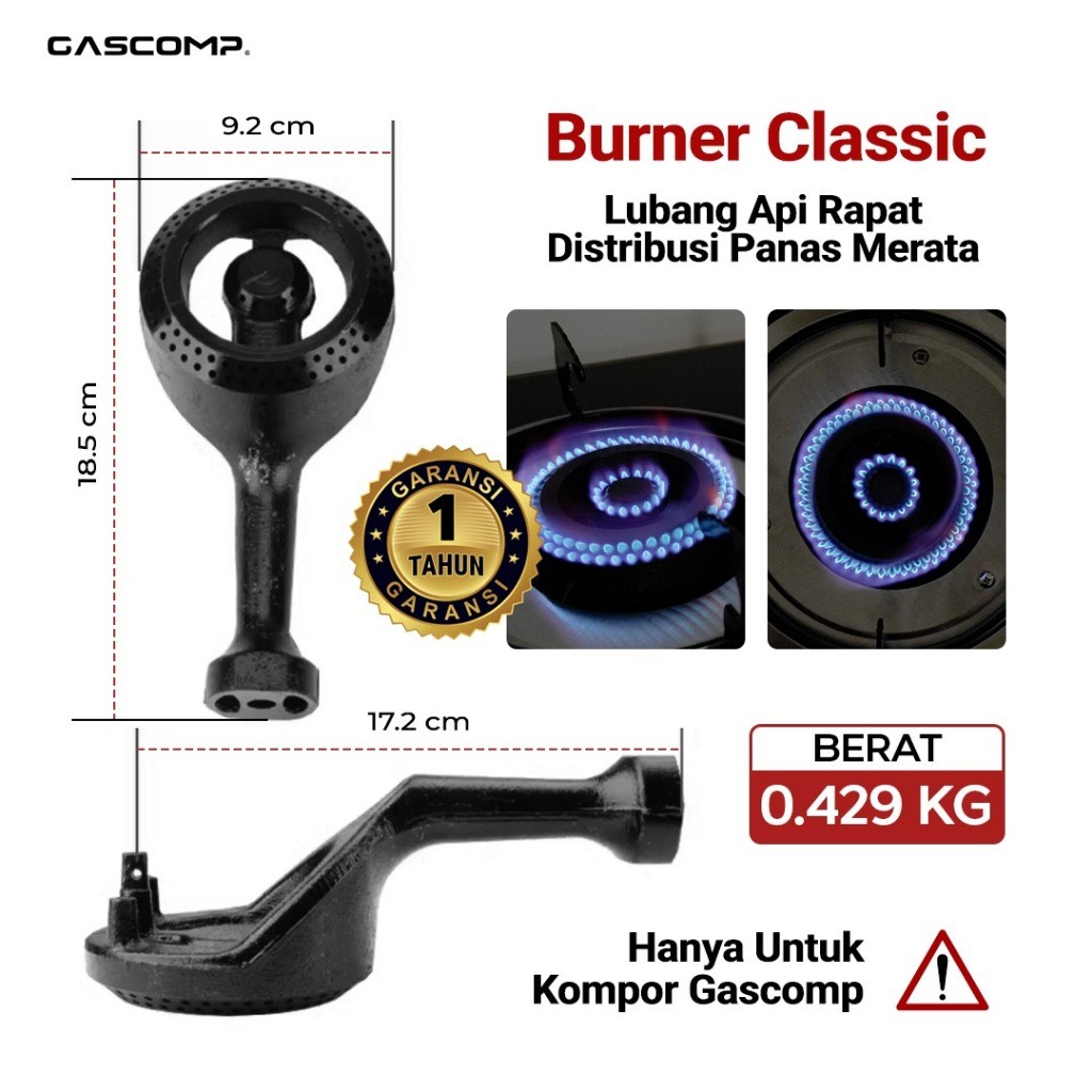 GASCOMP Burner Classic | Kepala Kompor Api Biru Lubang Rapat Pemanas Merata