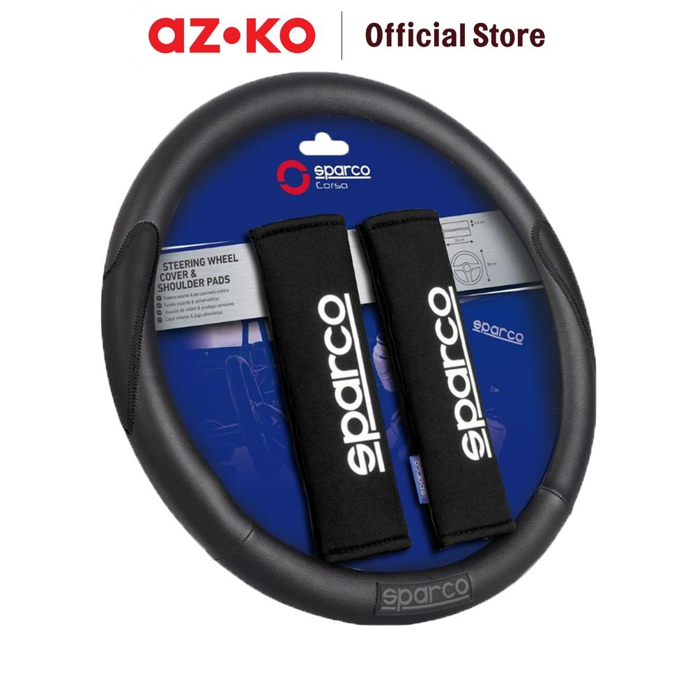 AZKO Sparco Set 3 Pcs Sarung Stir Mobil & Bantalan Bahu - Hitam Steer Cover Aksesoris Interior Mobil Case Setir Dekorasi