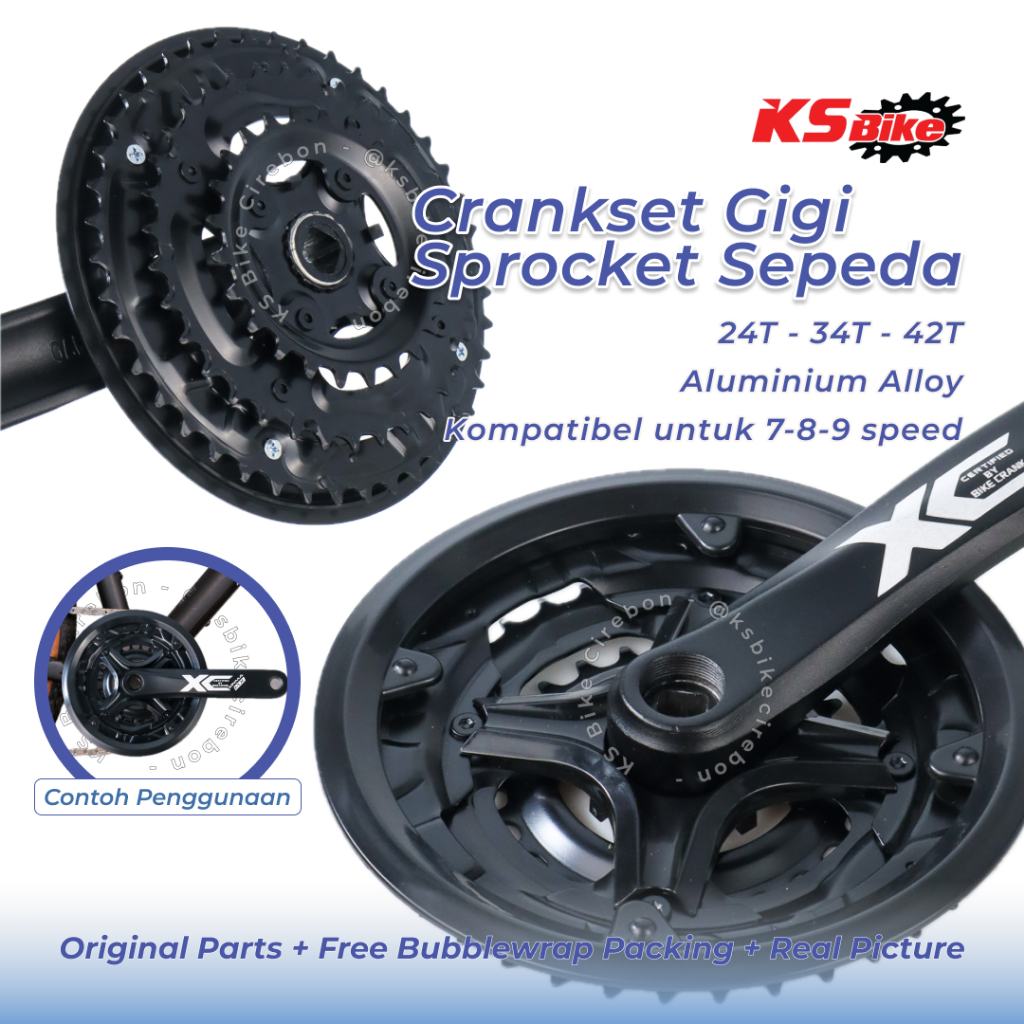Crankset Gigi Sepeda 24T 34T 42T MX Gir Tumpuk Sepeda 7 8 9 S Chainring Gigi Depan Triple Gear Set MTB Alloy Hitam - Gi