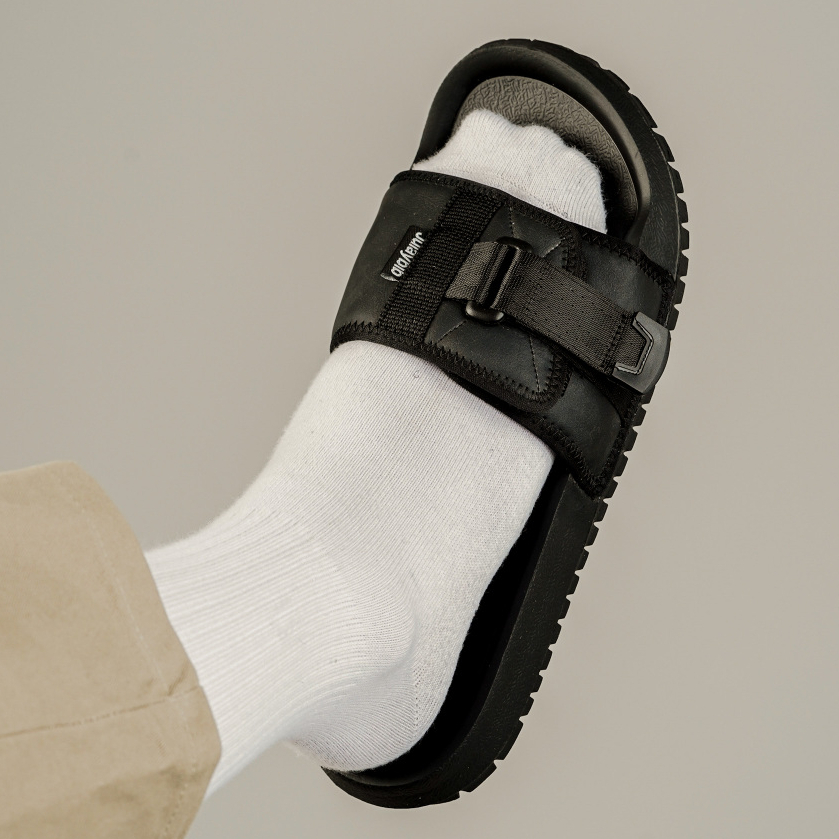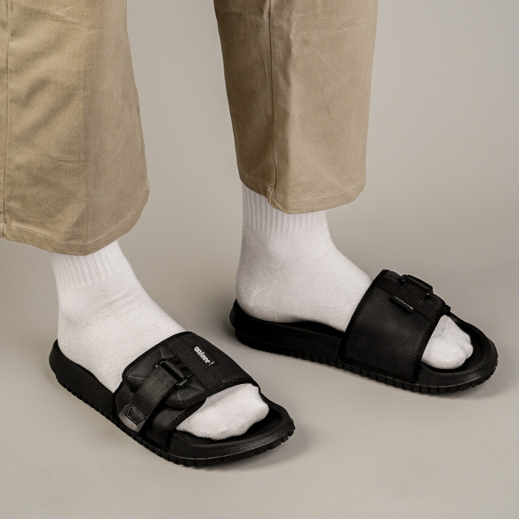 Julaybib Terjit - Black | Slippers Unisex | Sandal Slip On Kulit Pria Wanita | Slip Sendal Jersey Hitam