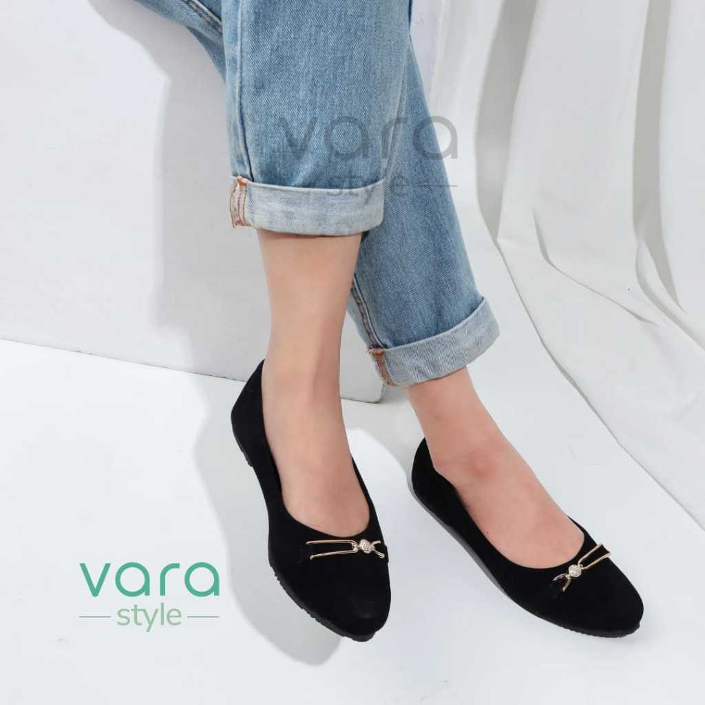 Vara Amira Sepatu Flatshoes Simpel Wanita Hitam Beludru Anti Slip VR1001